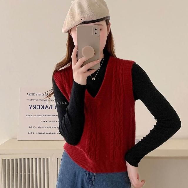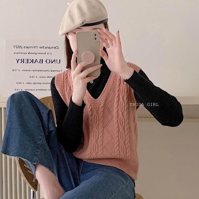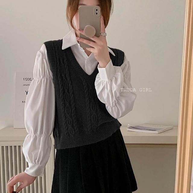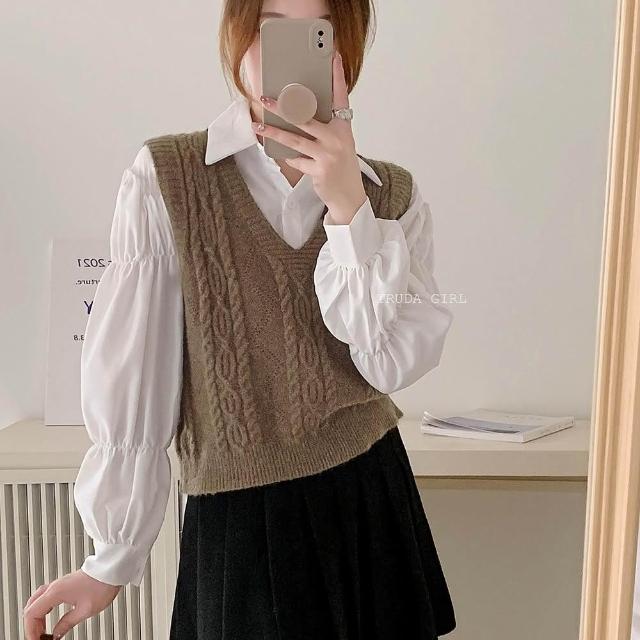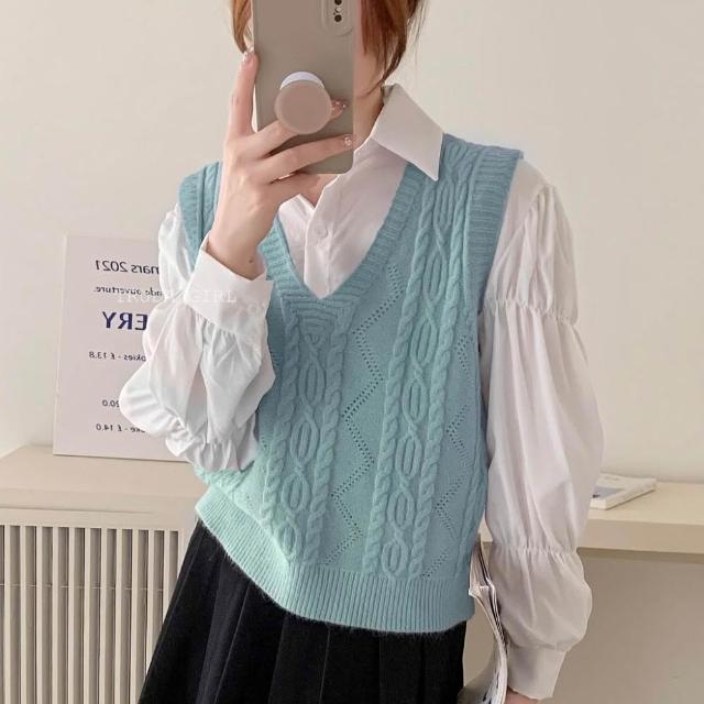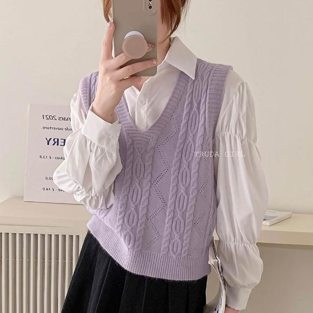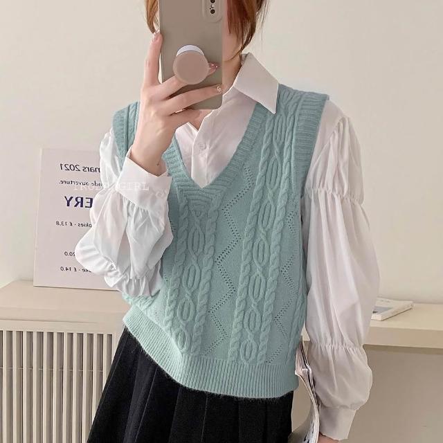 《杜達女孩》疊穿麻花辮馬甲背心 學院風仿羊絨混紡馬甲背心 毛衣背心 麻花背心 秋冬背心 外搭背心 V領背心搭襯衫 包芯紗