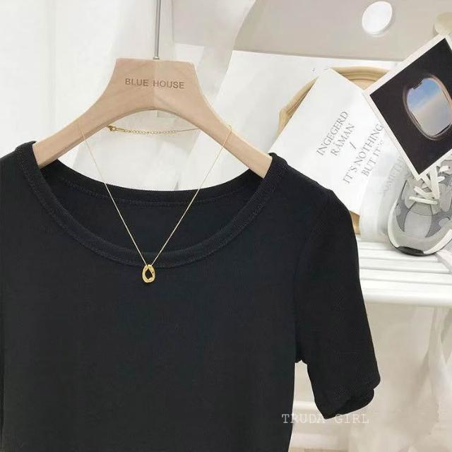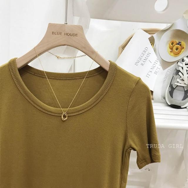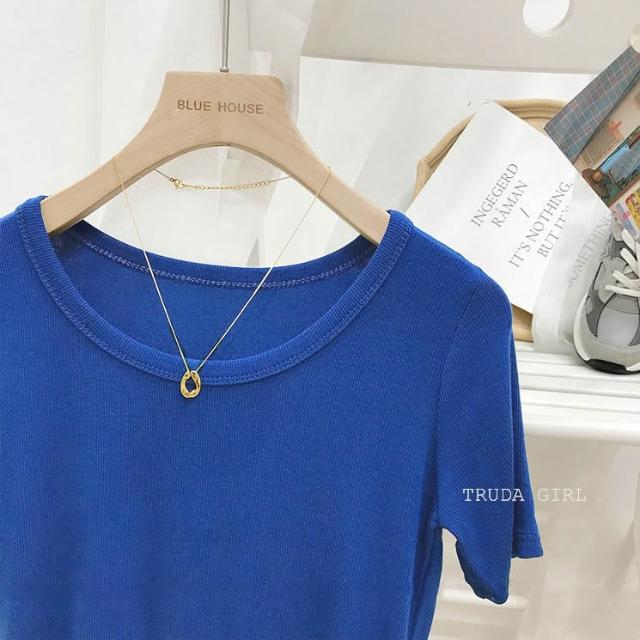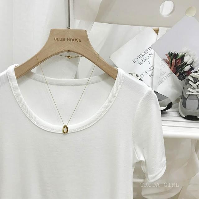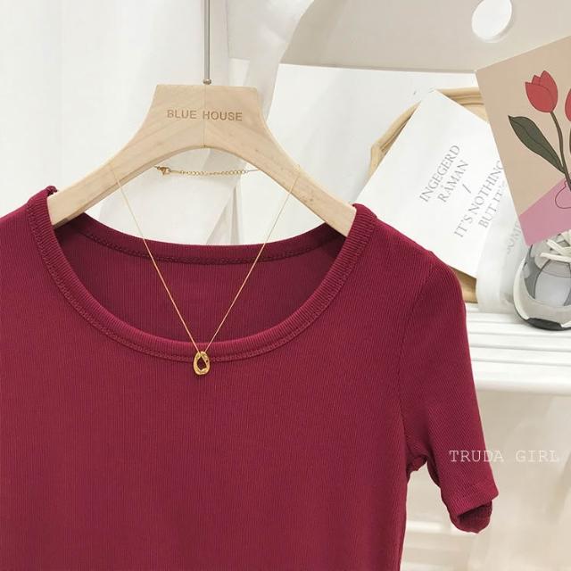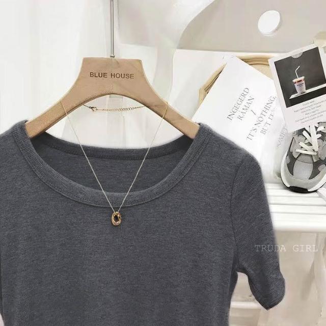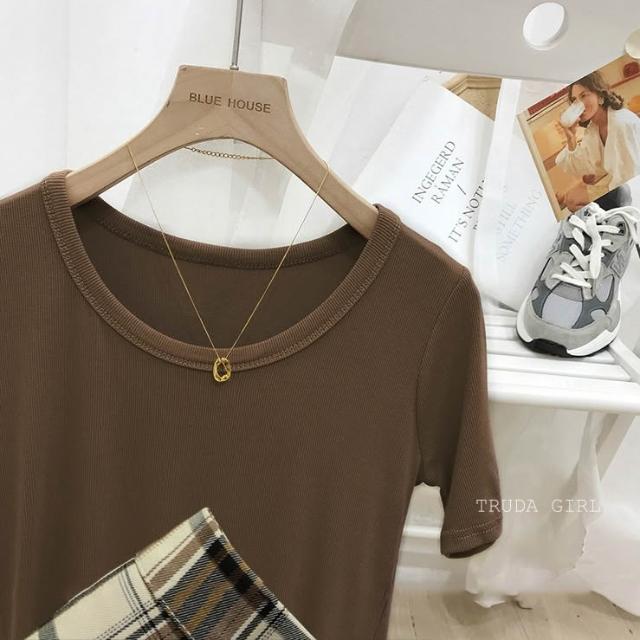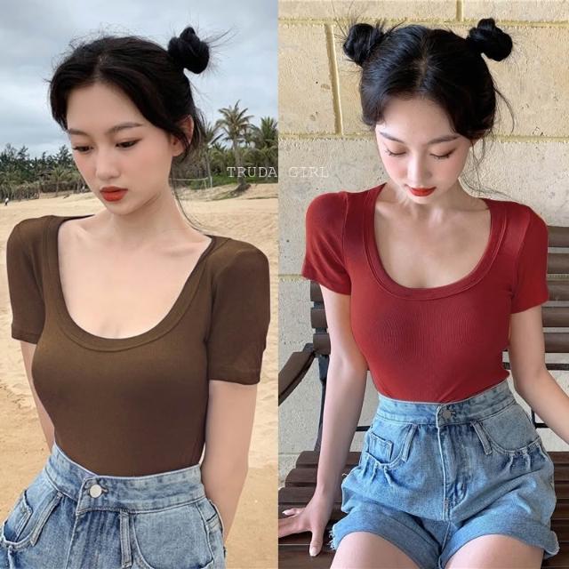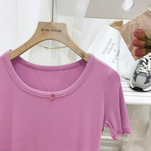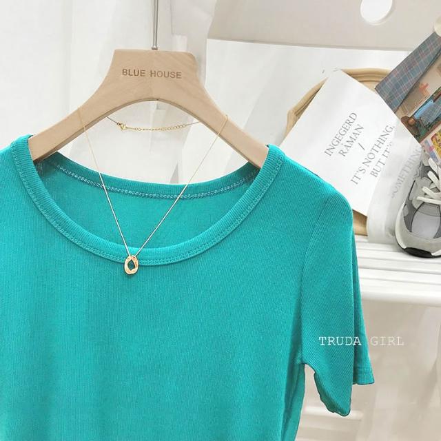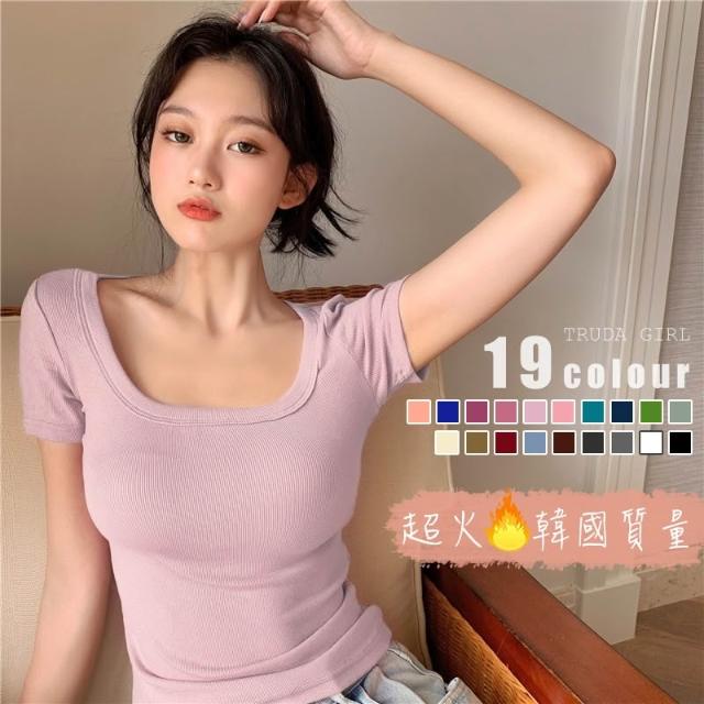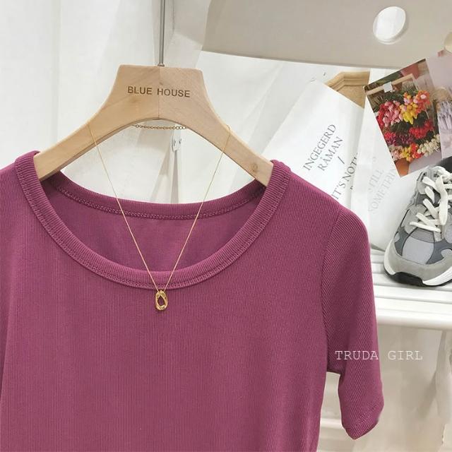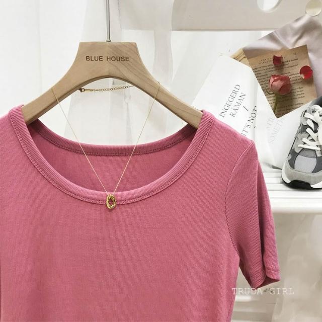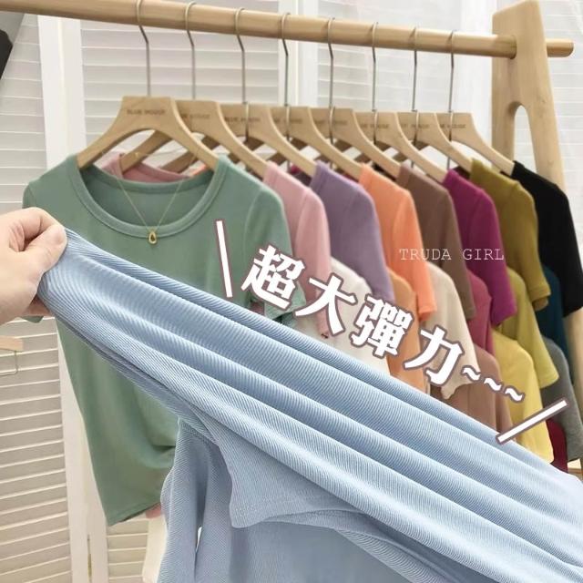 《杜達女孩》韓國質量 19色大U螺紋短袖t U領上衣 寬鬆上衣 U領 涼感上衣 螺紋t 短袖上衣 素T 純色t 緊身上衣