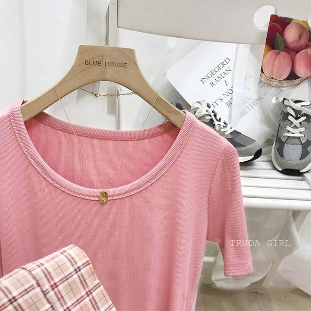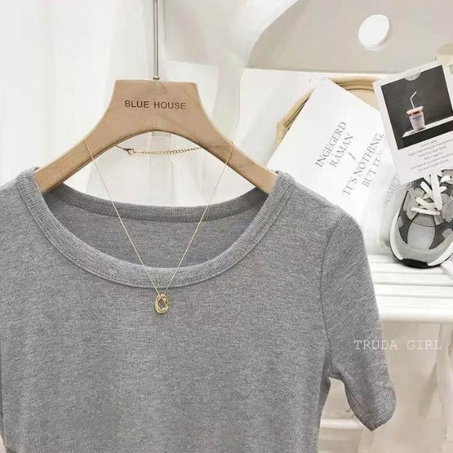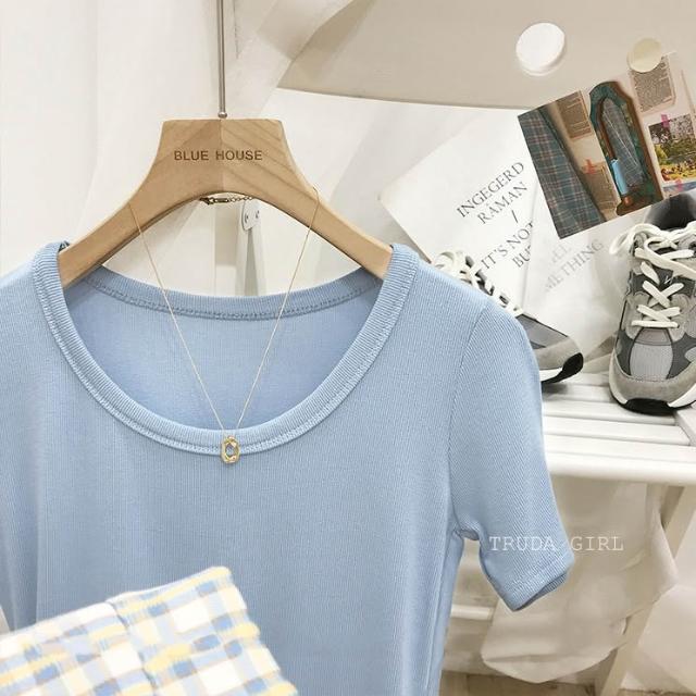 《杜達女孩》韓國質量 19色大U螺紋短袖t U領上衣 寬鬆上衣 U領 涼感上衣 螺紋t 短袖上衣 素T 純色t 緊身上衣