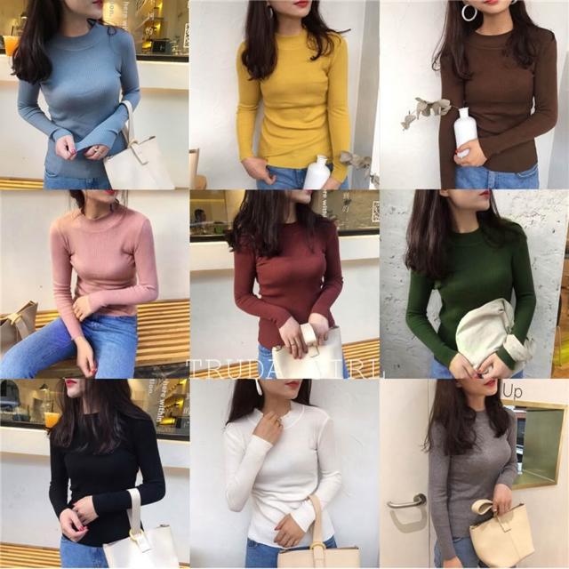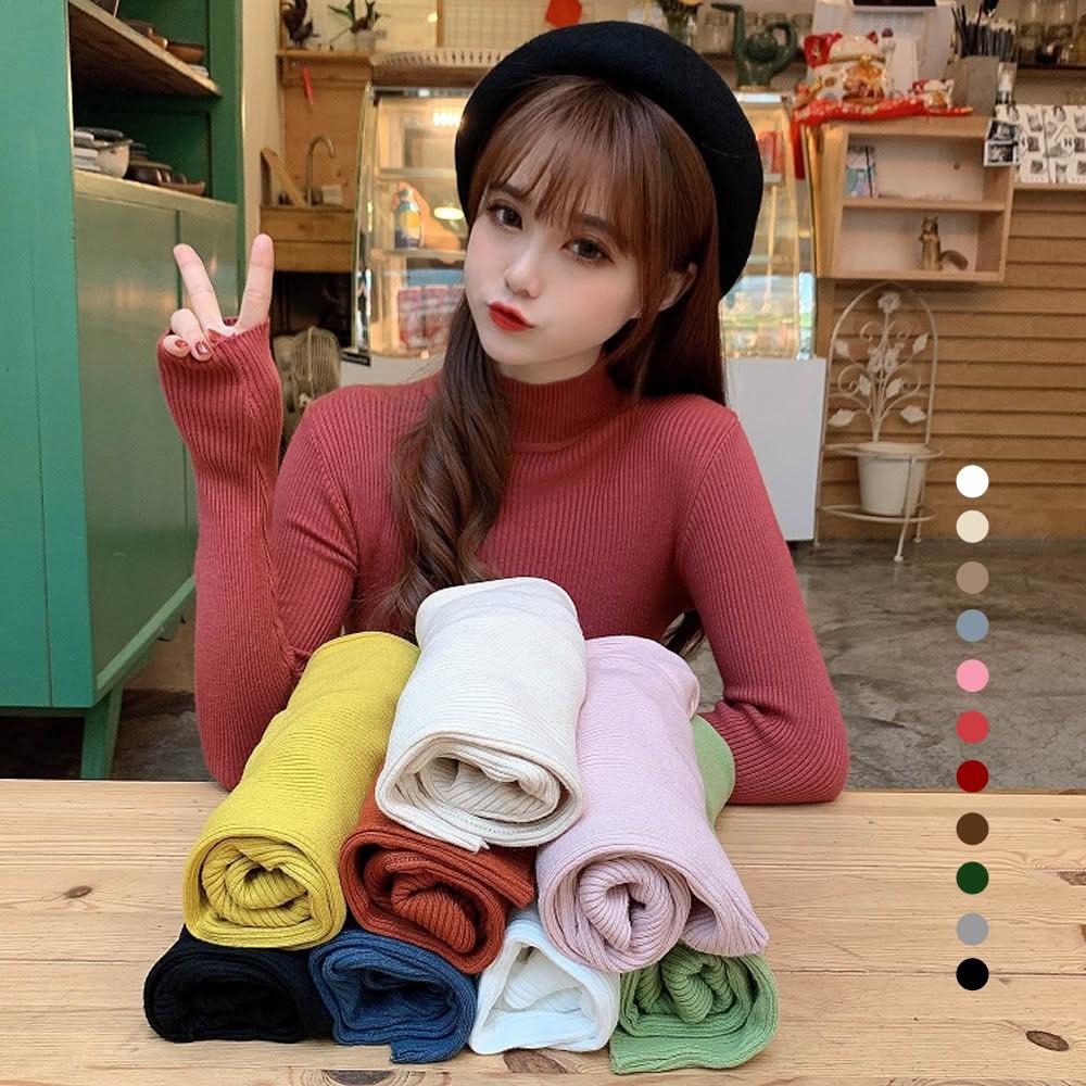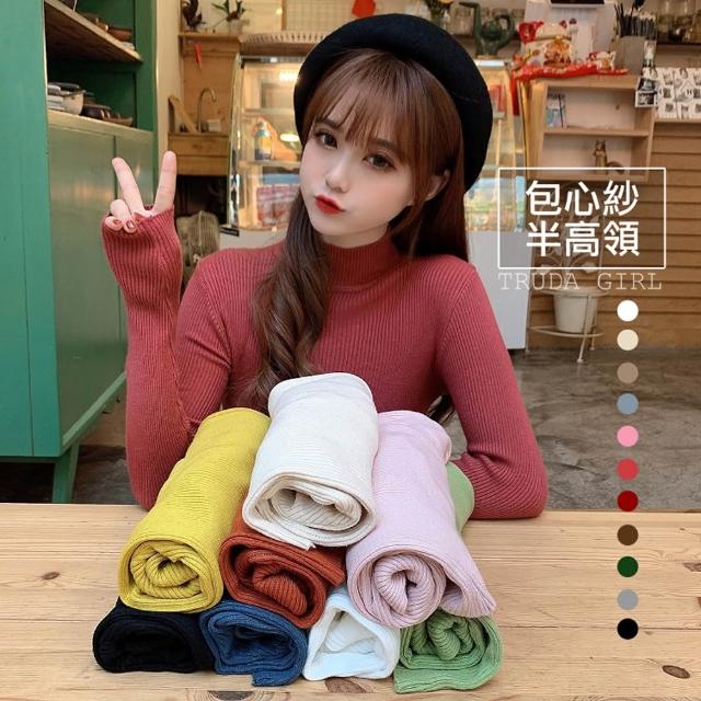 《杜達女孩》超彈包心紗半高領打底毛衣 半高領毛衣 長袖上衣 毛衣 針織衫 螺紋 針織上衣 坑條 女 秋冬 套頭