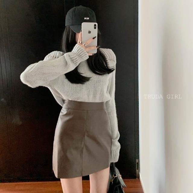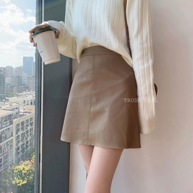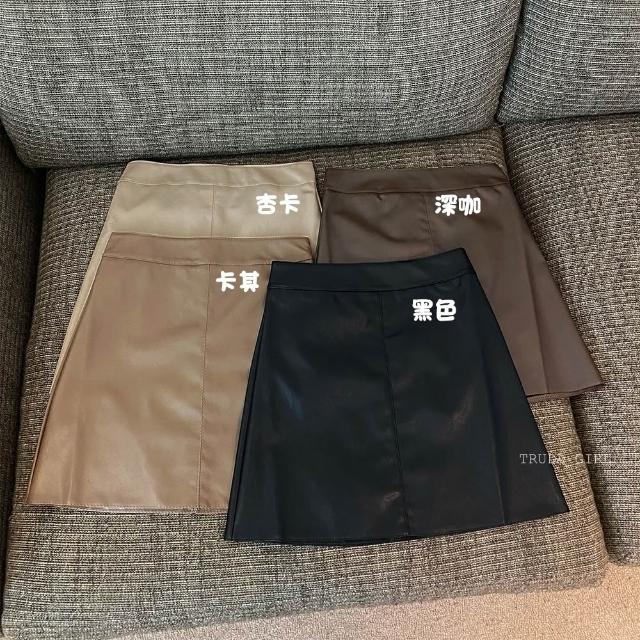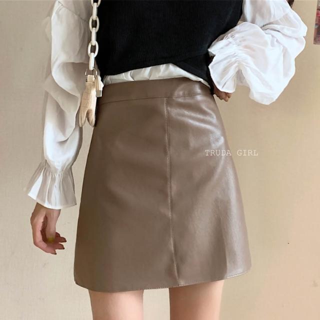 《杜達女孩》質感大地色霧面皮裙 防走光 有內襯 皮短裙 包臀裙 皮裙 短裙 a字裙 半身裙 裙子 女 包臀裙