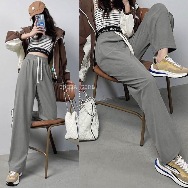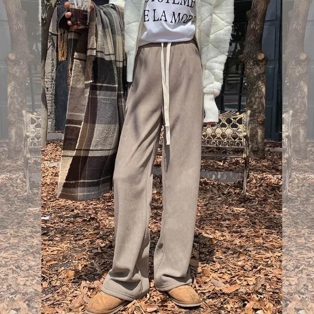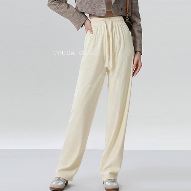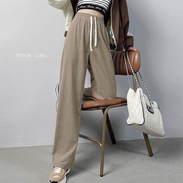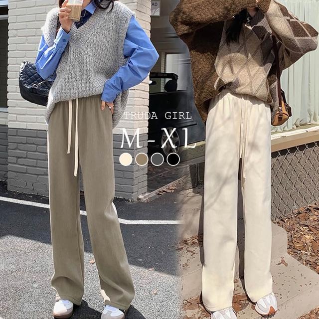 《杜達女孩》優質好手感M-XL燈芯絨抽繩綁帶直筒落地褲 闊腿褲 鬆緊腰長褲 秋冬長褲 燈芯絨 休閒長褲 雪尼爾寬褲 長褲