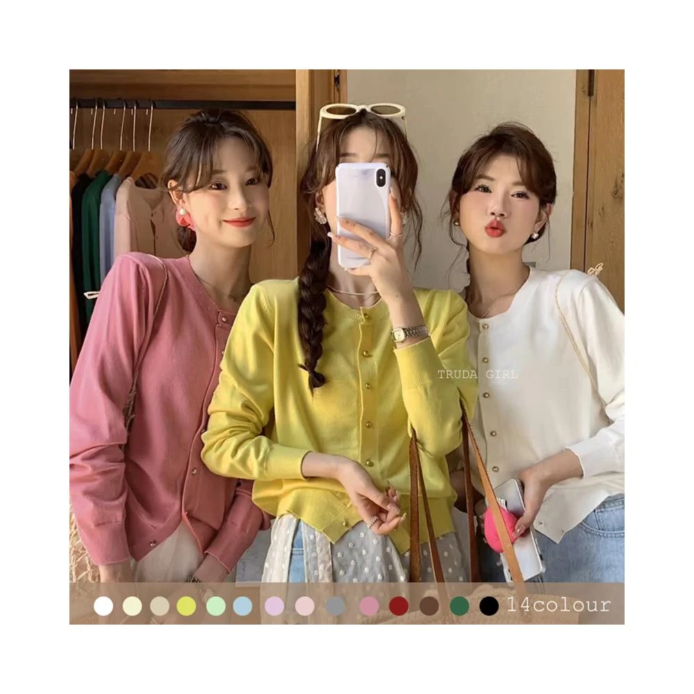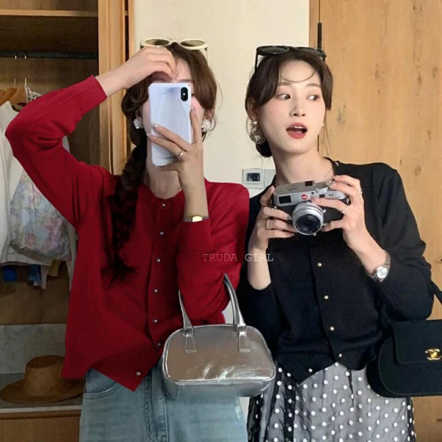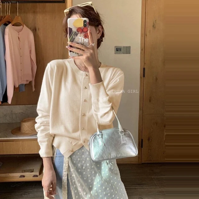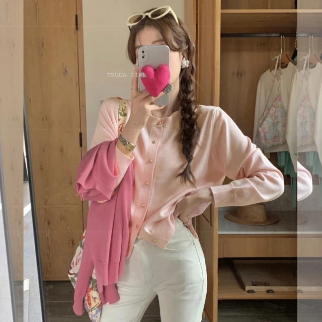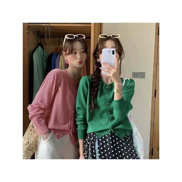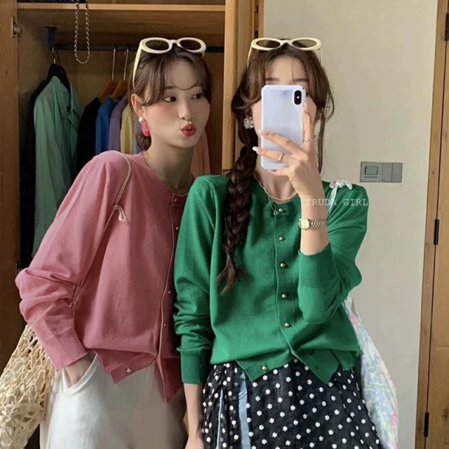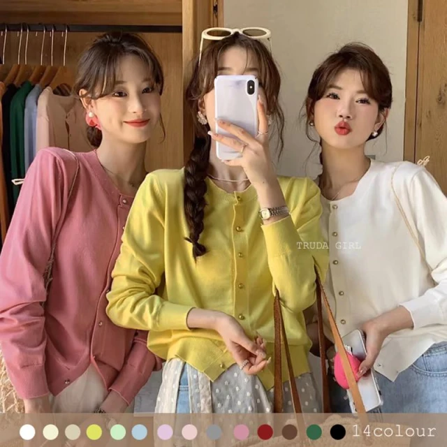 《杜達女孩》14色小金扣針織開衫 上衣外套 秋冬薄針織外套 包芯紗針織外套 長袖外套 薄外套 小香風純色外套 長袖上衣
