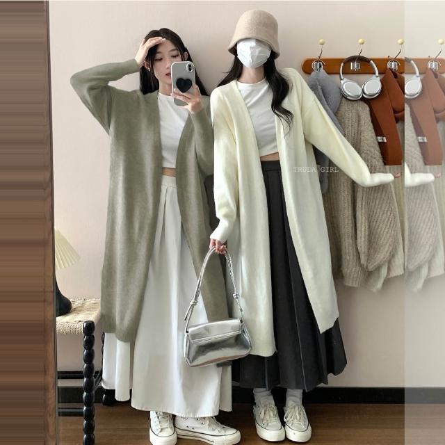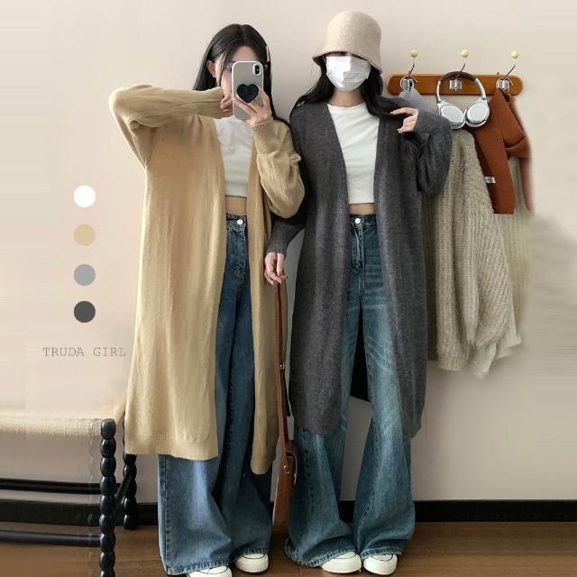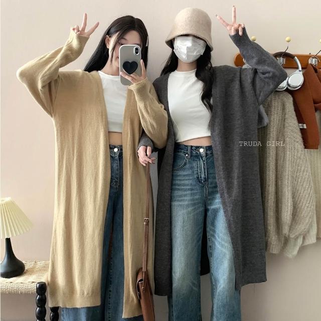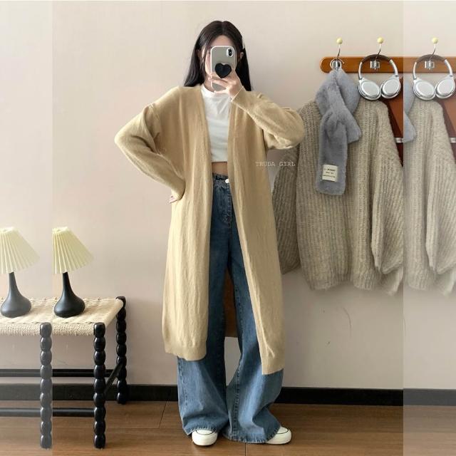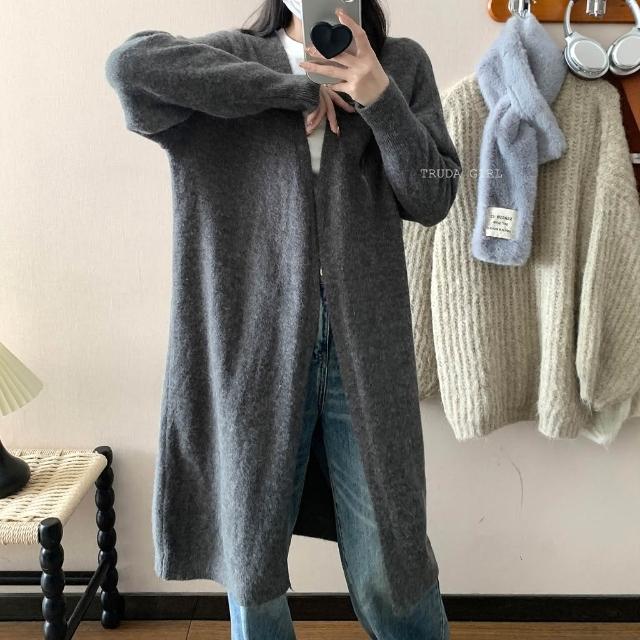 《杜達女孩》沉甸甸仿羊絨混紡長版針織外套 寬鬆針織外套 女 針織外套 長版長款 遮屁屁大衣外套 大尺碼 包芯紗 開襟外套