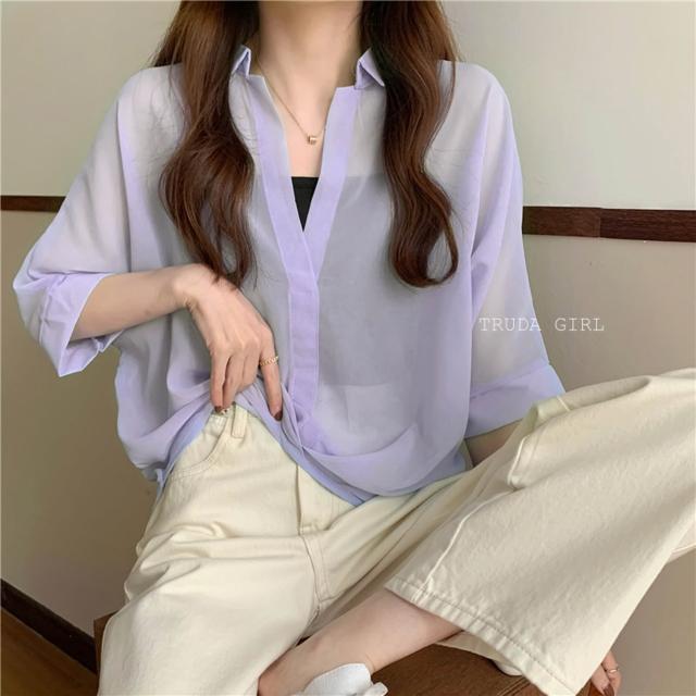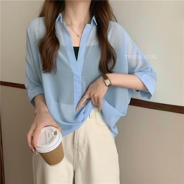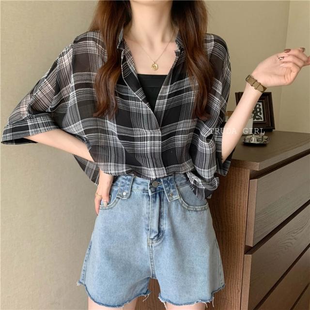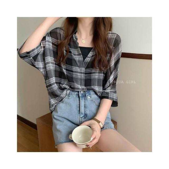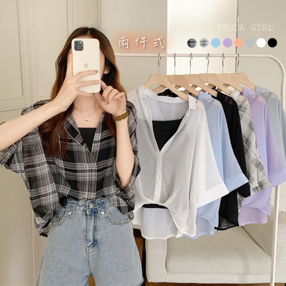 《杜達女孩》八款可選 雪紡二件式襯衫 V領七分袖襯衫 兩件式 格子襯衫 雪紡蝙蝠袖 七分袖雪紡襯衫 短袖襯衫