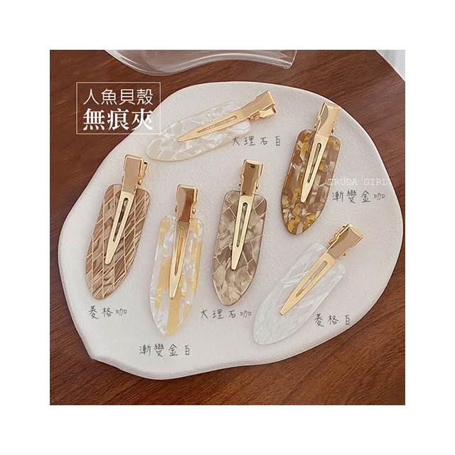 《杜達女孩》人魚貝殼無痕髮夾 醋酸水滴髮夾 炫彩大理石髮夾 瀏海夾 無痕髮夾 髮夾 韓系髮夾 貝殼髮夾 bb夾 鴨嘴夾