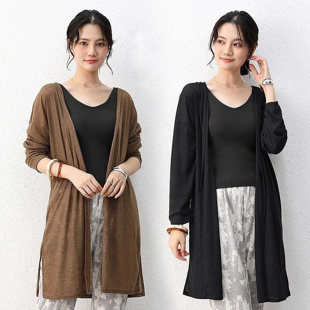 《杜達女孩》涼感防曬六色竹節防曬開衫 仿棉麻長版外套 薄外套 防曬罩衫 防曬外套 罩衫 防曬衫 開衫外套 中長版防曬外套