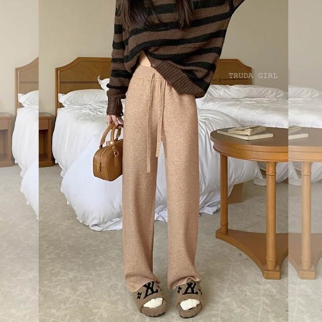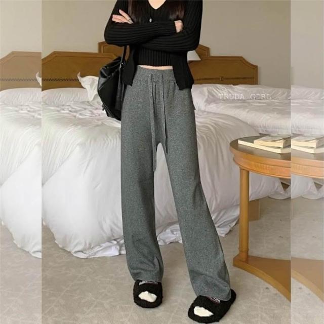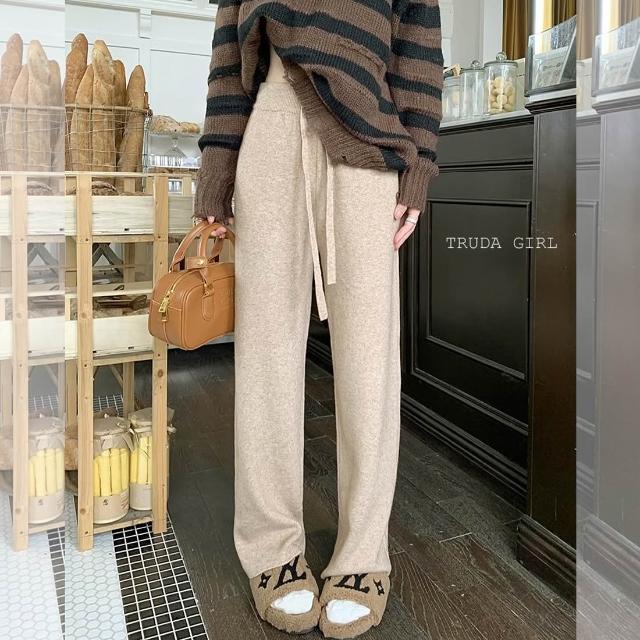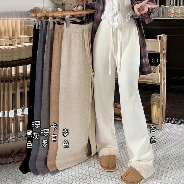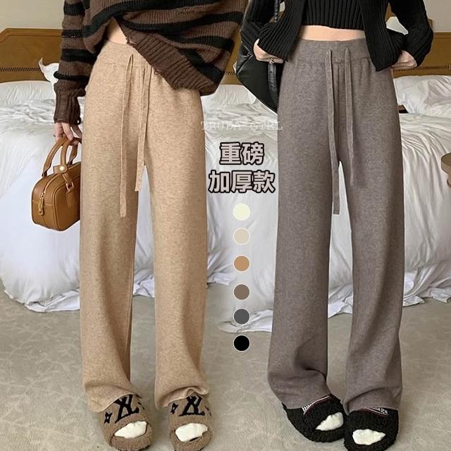 《杜達女孩》重磅來襲!加厚秋冬針織長褲 加厚包心紗羊絨混紡針織闊腿褲 針織長褲 針織寬褲 鬆緊腰直筒褲 針織褲 保暖長褲