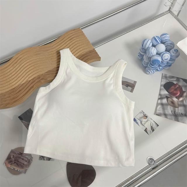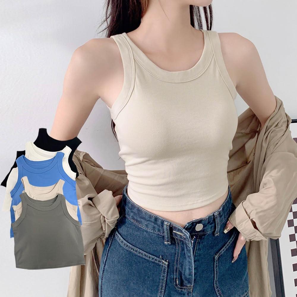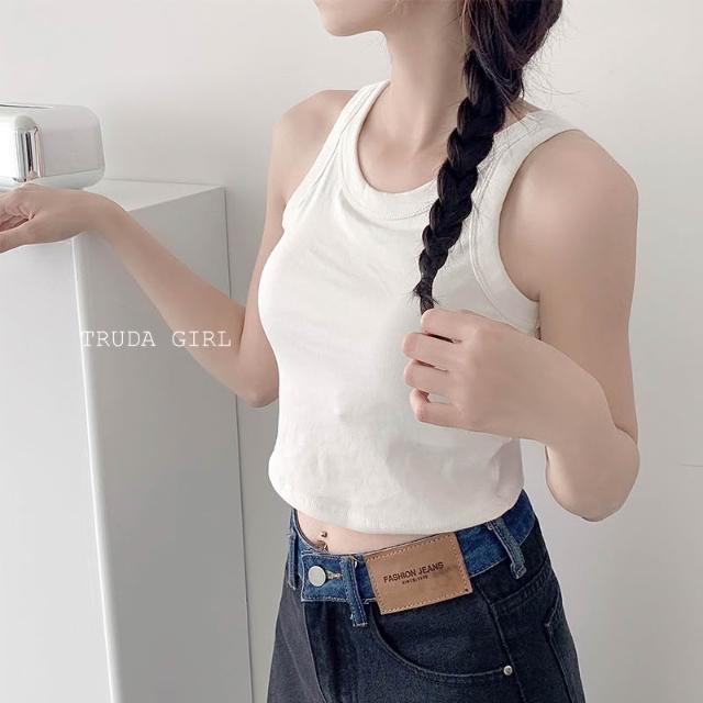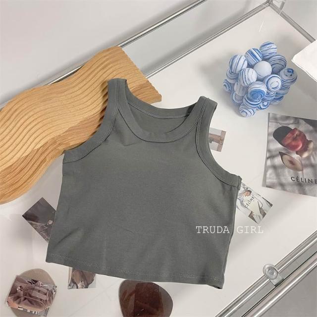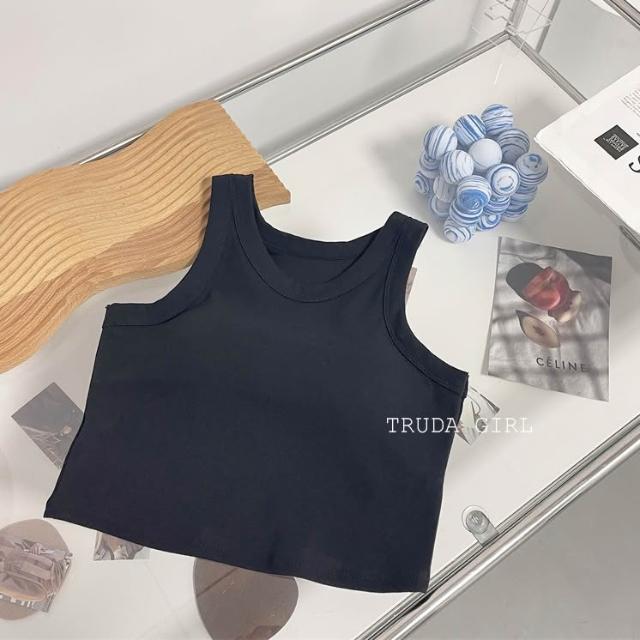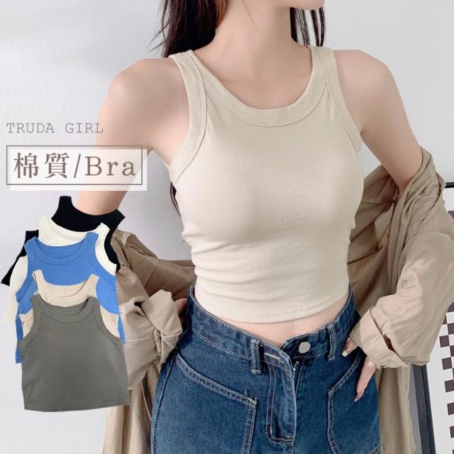 《杜達女孩》夏日好感棉質bra削肩彈力背心 bra背心 棉質背心 無袖背心 短版背心 運動背心 短版上衣 螺紋胸墊背心