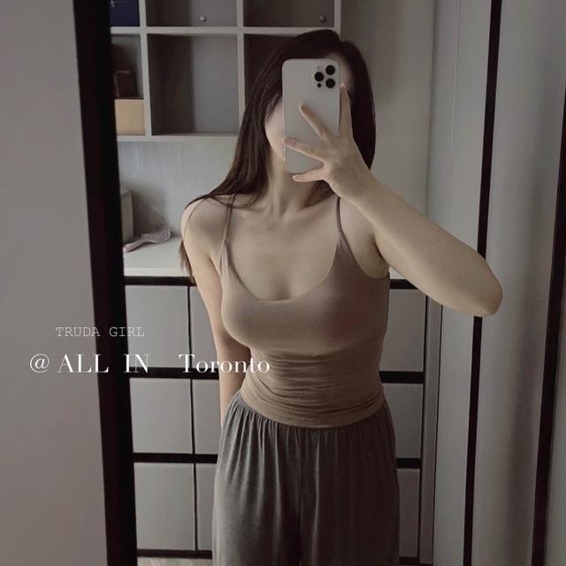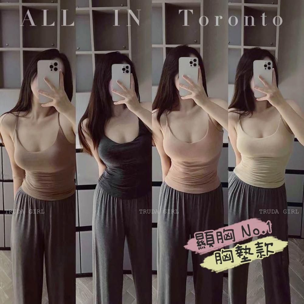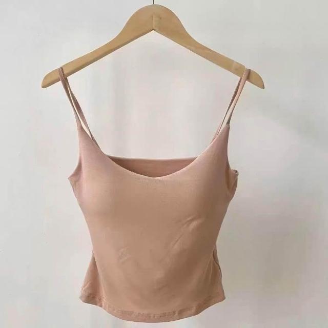 《杜達女孩》原版極致挺胸美型胸墊吊帶背心 顯胸U型細肩帶背心 罩杯背心 吊帶背心 胸墊背心 棉質內搭背心 顯胸背心小吊帶