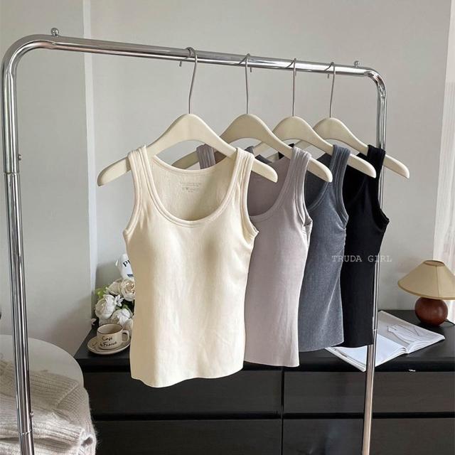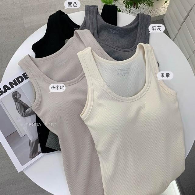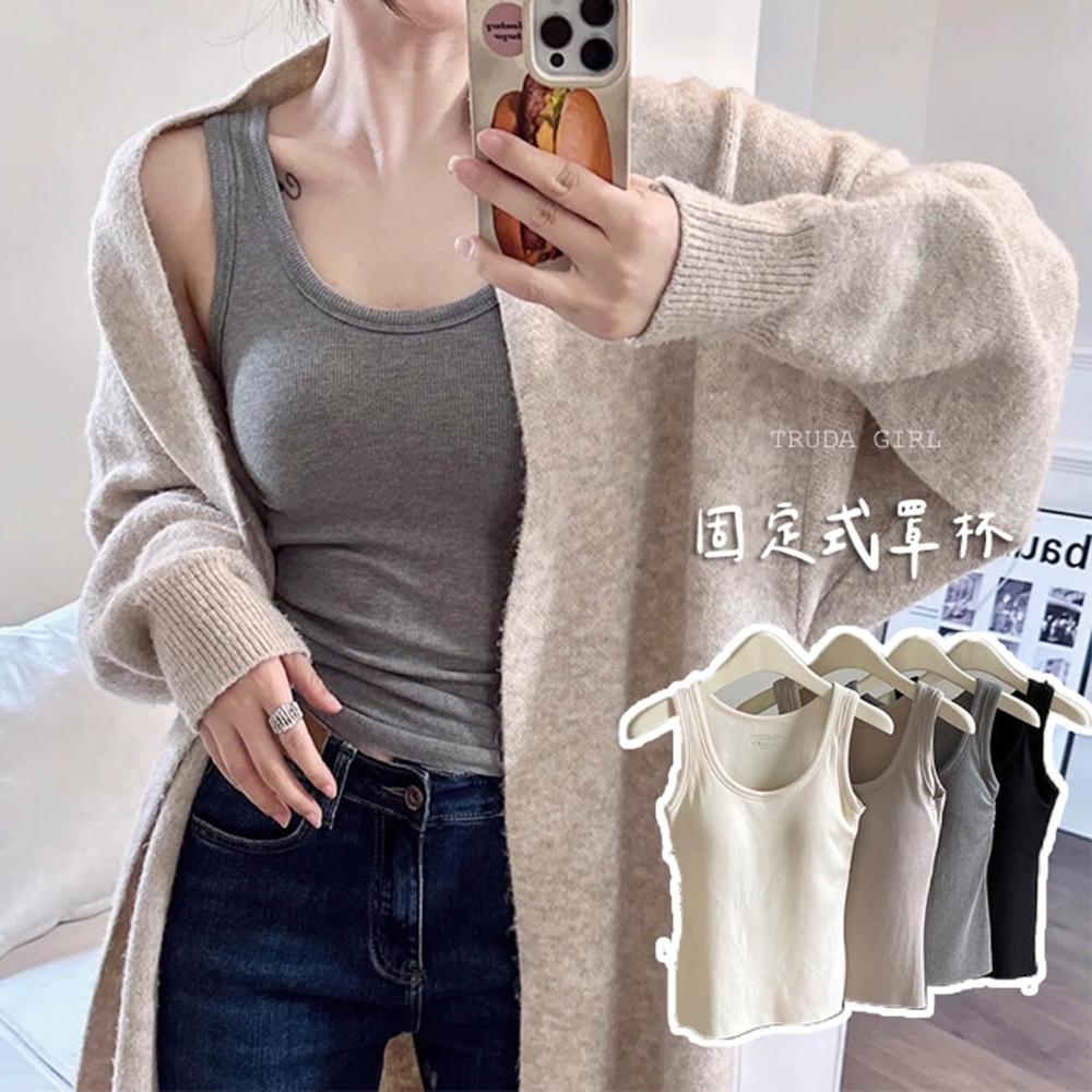 《杜達女孩》經典高彈罩杯式螺紋背心 吊帶背心 內搭背心 胸墊背心 坦克背心 螺紋背心 大U領吊帶背心 胸墊罩杯式背心
