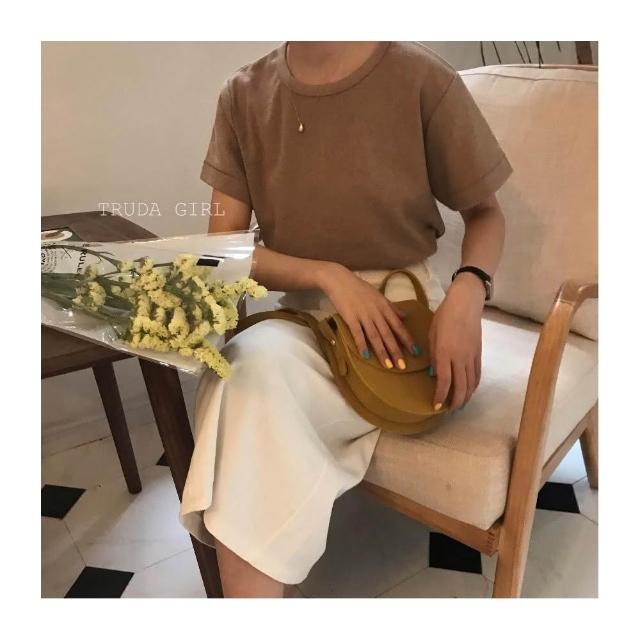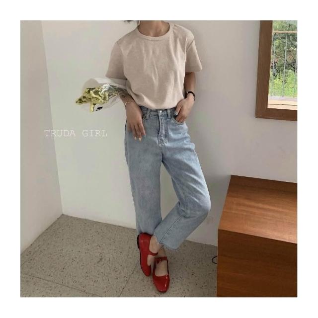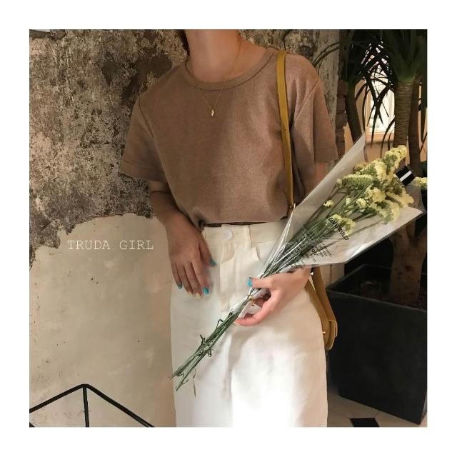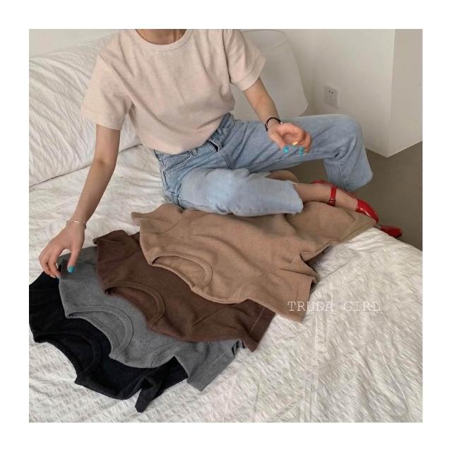 《杜達女孩》實拍質感大地色 磨毛高磅數短袖T恤 夏季純色圓領T恤 百搭學生服 短袖上衣 短袖 tee T恤 女 短版上衣