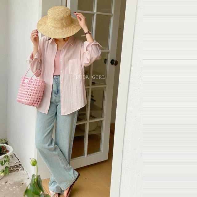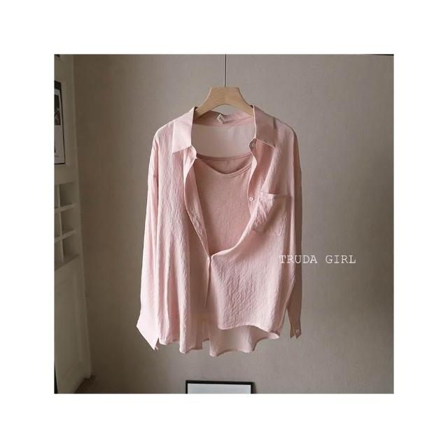 《杜達女孩》新款麻棉兩件套 襯衫+吊帶背心 兩件式襯衫 防曬罩衫 防曬襯衫 雪紡罩衫 開衫外套 薄款 防曬外套 襯衫罩衫