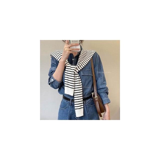 《杜達女孩》秒變有型造型必備條紋披肩 針織披肩 條紋披肩 造型披肩 假兩件披肩 外套披肩 女 服飾配件 薄披肩 披肩