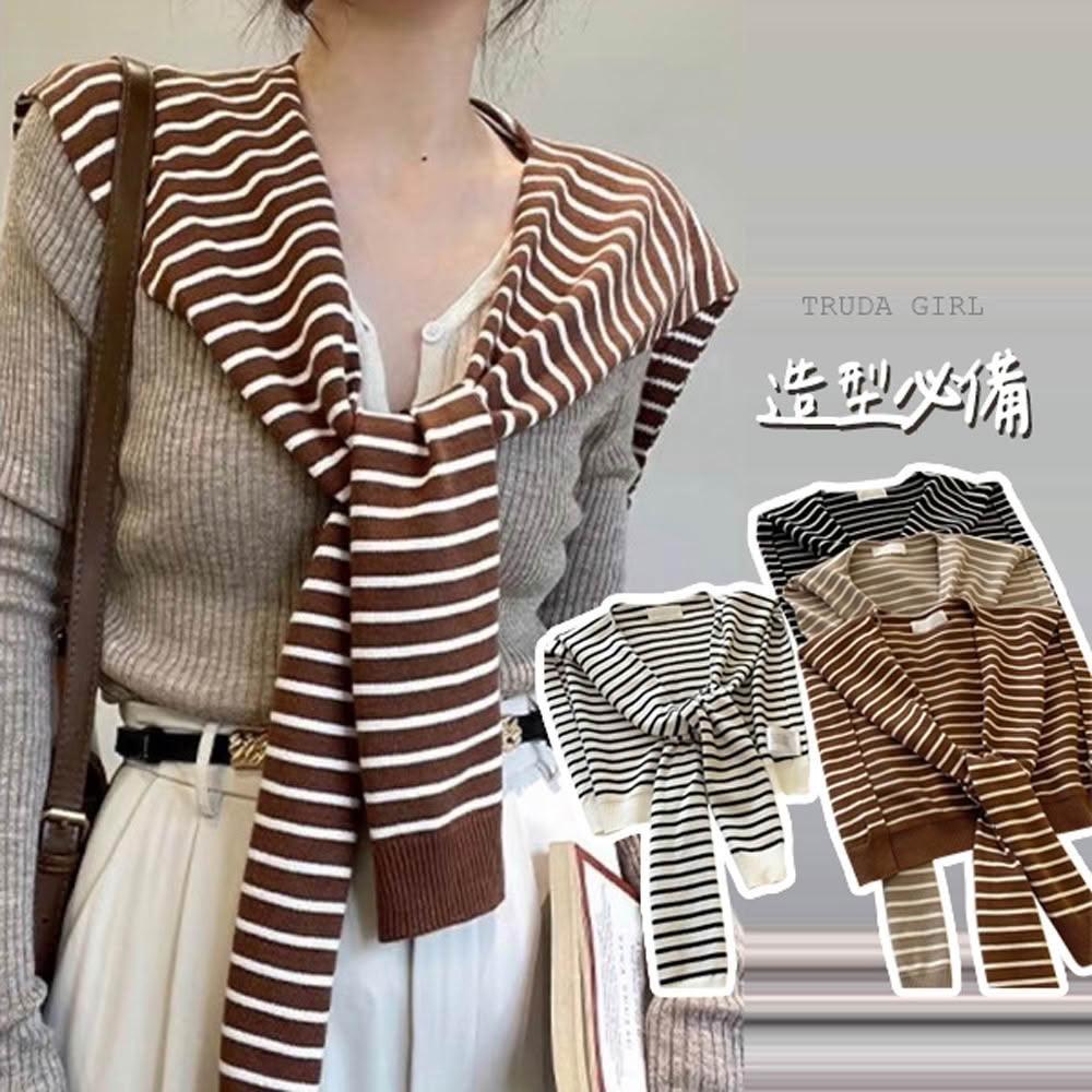 《杜達女孩》秒變有型造型必備條紋披肩 針織披肩 條紋披肩 造型披肩 假兩件披肩 外套披肩 女 服飾配件 薄披肩 披肩