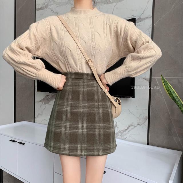 《杜達女孩》復古毛呢格紋短裙 防走光格紋高腰短裙 格子裙 格子毛呢短裙 包臀裙 窄裙 裙子 a字裙 呢子短裙 秋冬短裙