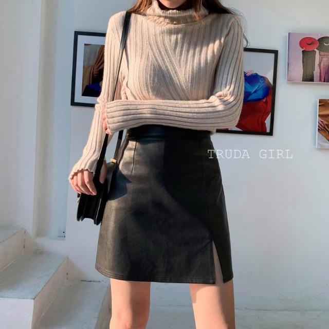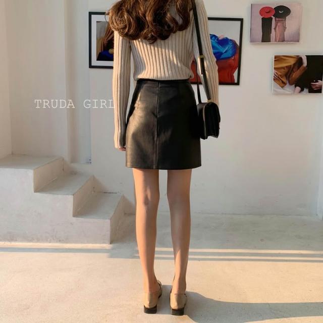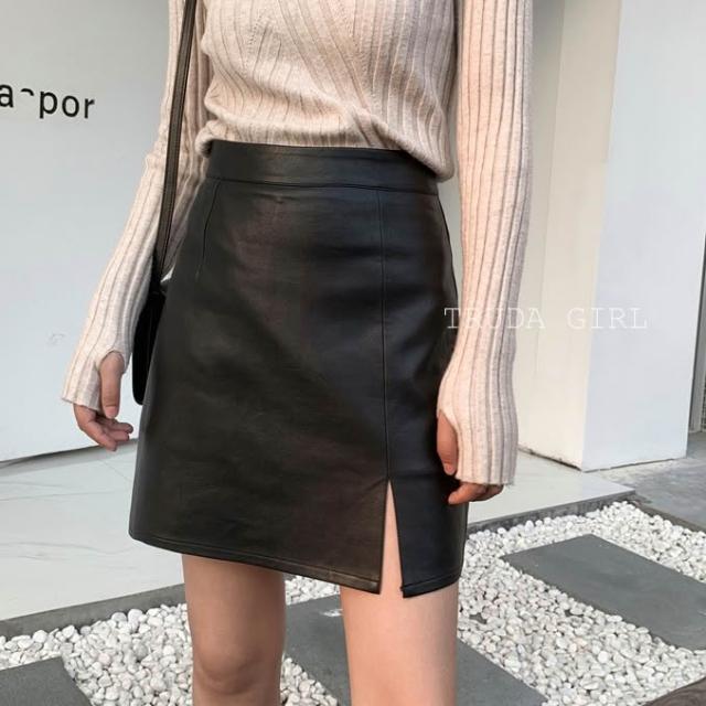 《杜達女孩》質感防走光開叉皮裙 韓版高腰A字裙 安全褲 皮短裙 短皮裙 開叉包臀短裙 皮裙 短裙 窄裙 裙子 包臀裙