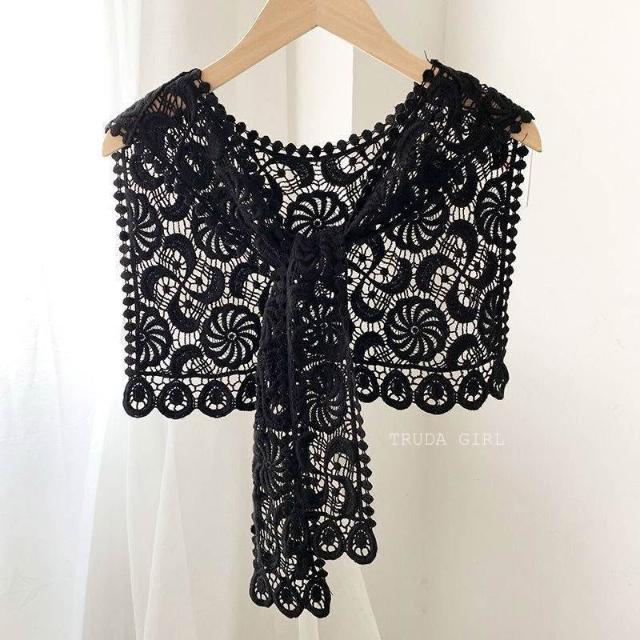 《杜達女孩》日系雕花鏤空披肩 鈎花披肩 針織披肩 造型披肩 蕾絲鈎花披肩 百搭披肩 配件 上衣披肩 外搭 女