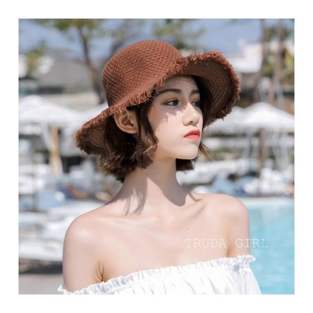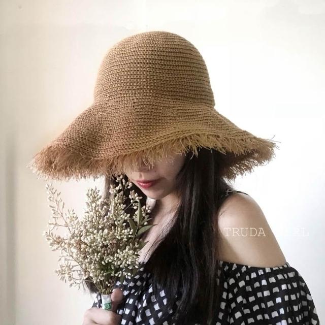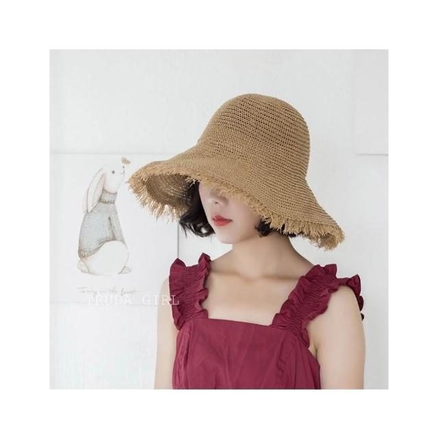 《杜達女孩》可折疊針織漁夫帽 手工草帽 抽鬚邊 編織草帽 遮陽帽 防曬 漁夫帽 編織帽 女 帽子