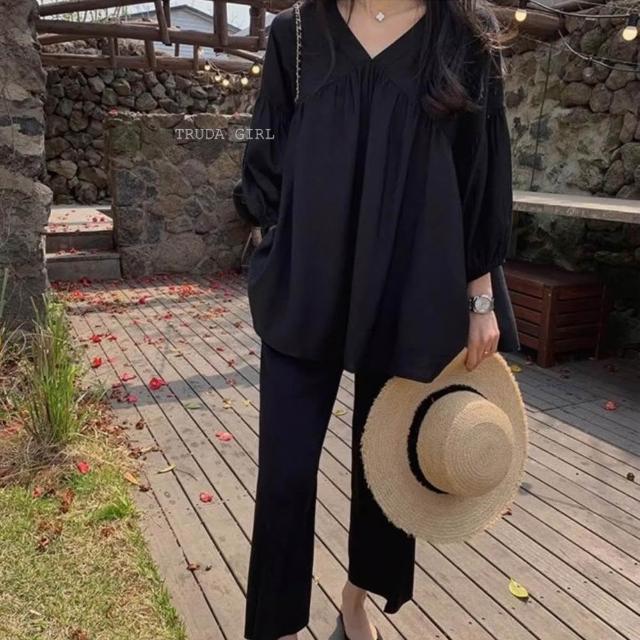 《杜達女孩》海鹽氧氣仿麻雪紡上衣 V領七分袖娃娃裝 傘狀上衣 遮肚上衣 寬鬆上衣 娃娃裝 孕婦裝 雪紡上衣 V領上衣 女
