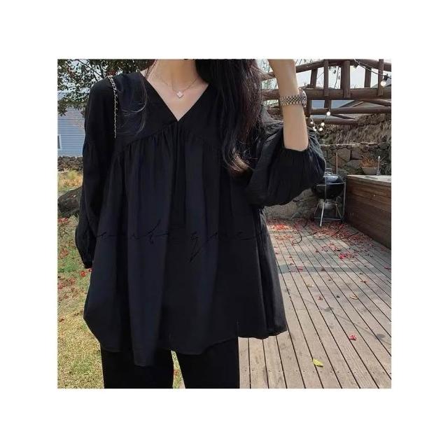 《杜達女孩》海鹽氧氣仿麻雪紡上衣 V領七分袖娃娃裝 傘狀上衣 遮肚上衣 寬鬆上衣 娃娃裝 孕婦裝 雪紡上衣 V領上衣 女
