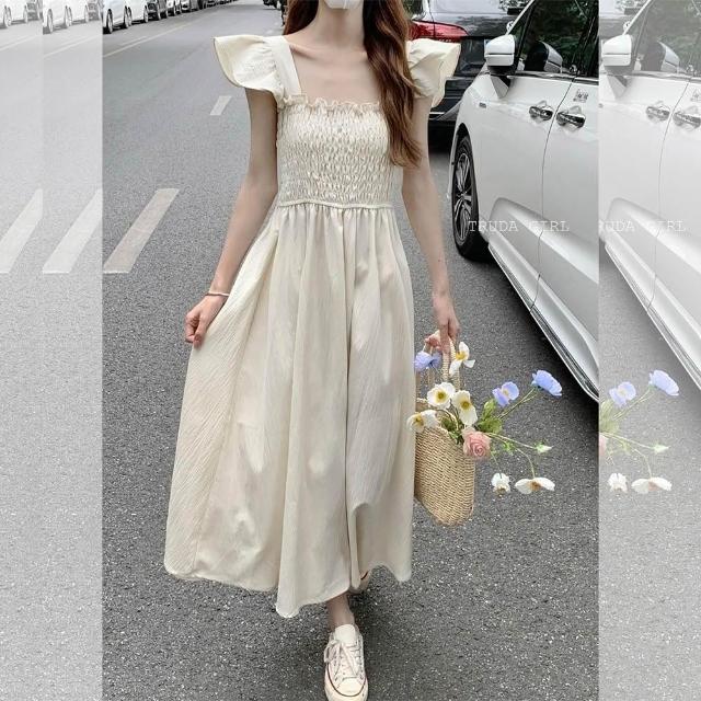 《杜達女孩》安妮安德拉飛飛袖連身洋裝 渡假洋裝 雪紡洋裝 白色洋裝 無袖洋裝 連身裙 連身長裙 方領連身裙 海島風洋裝
