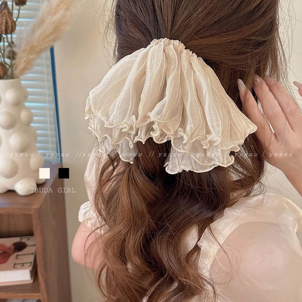 《杜達女孩》流光紗蕾絲大腸圈 浪漫髮圈 大腸圈 綁髮繩 蕾絲綁 雪紡髮飾 飾品 波浪邊髮繩 蕾絲馬尾綁 造型髮圈 雪紡