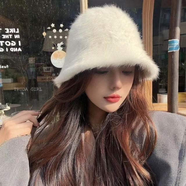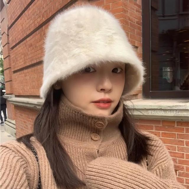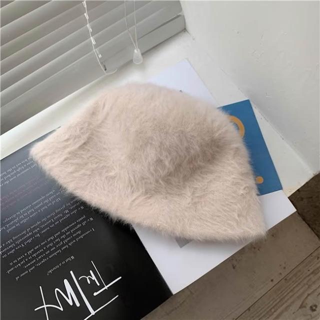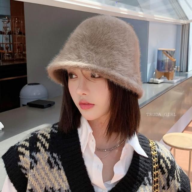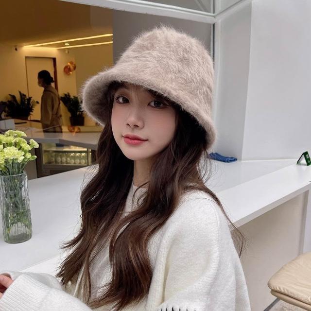《杜達女孩》穿搭感UP顯臉小帽子 秋冬絨毛帽 毛茸茸盆帽 素面純色漁夫帽 毛絨帽 帽子 水桶帽 絨毛帽 帽子 仿兔毛帽