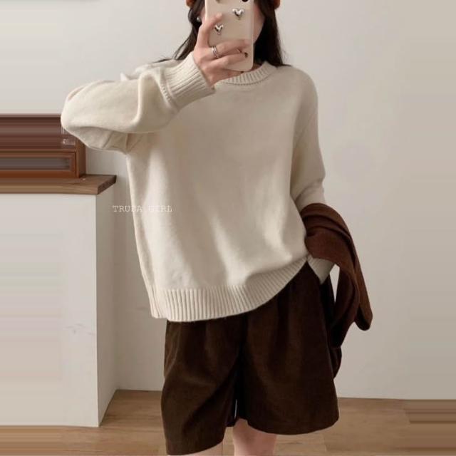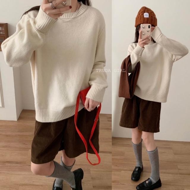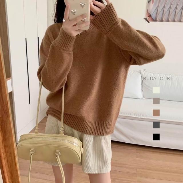 《杜達女孩》一穿即暖 大地色圓領仿羊絨高級毛衣 針織毛衣 保暖毛衣 長袖毛衣 長袖上衣 圓領上衣 寬鬆毛衣 女生毛衣