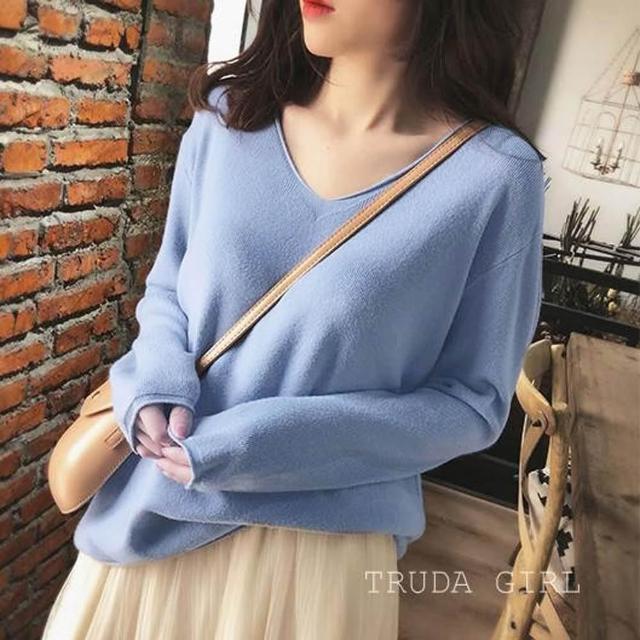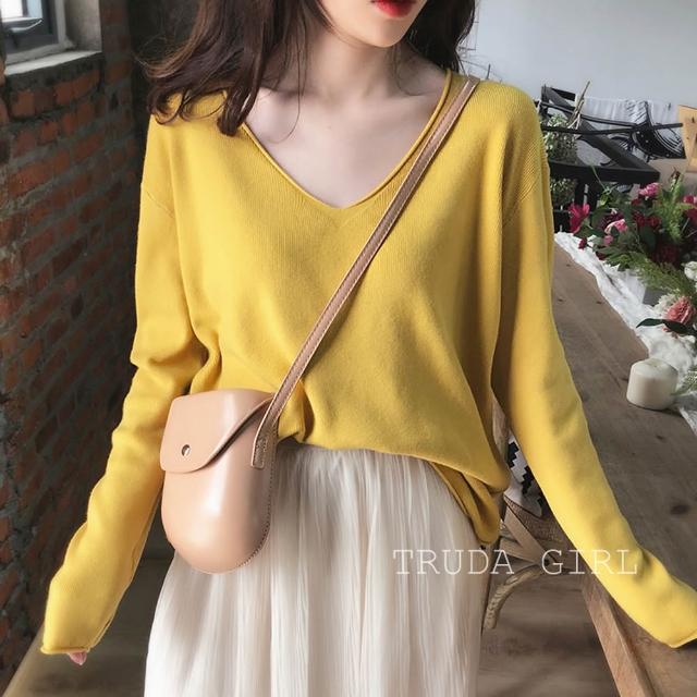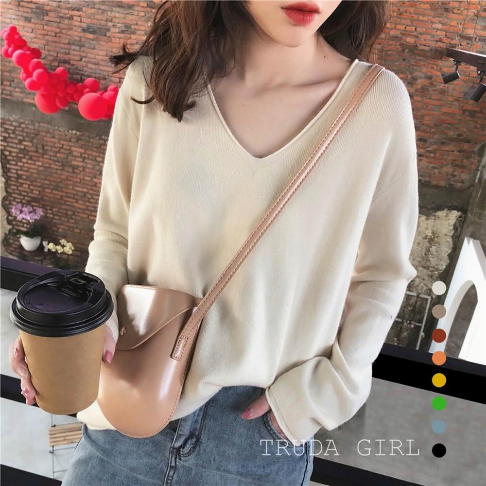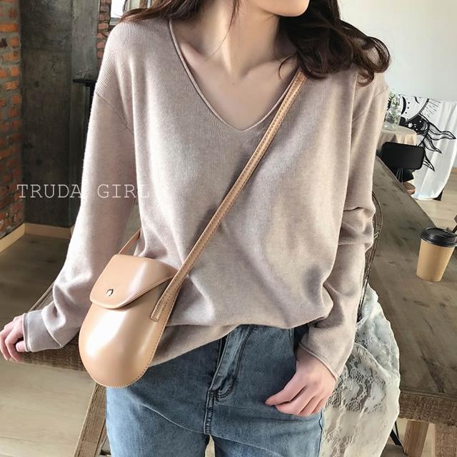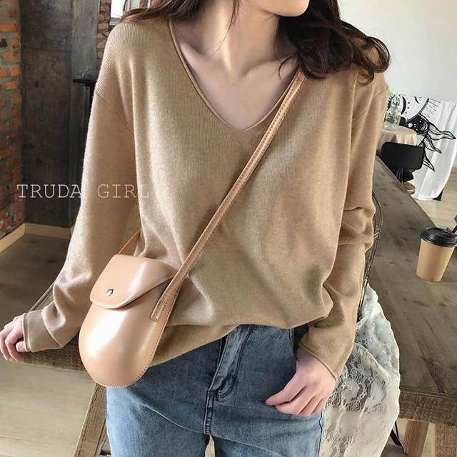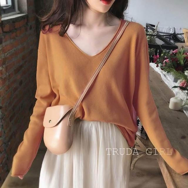 《杜達女孩》暖色質感秋冬V領針織上衣 包心紗 長袖上衣 針織毛衣 長袖針織上衣 薄針織 V領針織 長袖針織 薄毛衣 上衣
