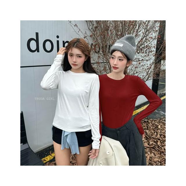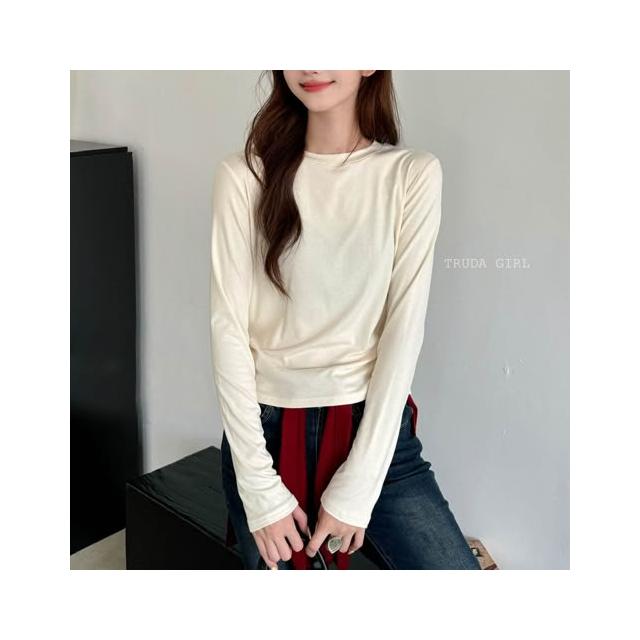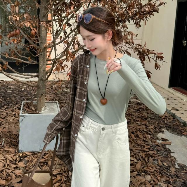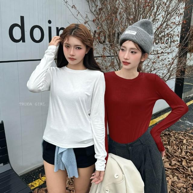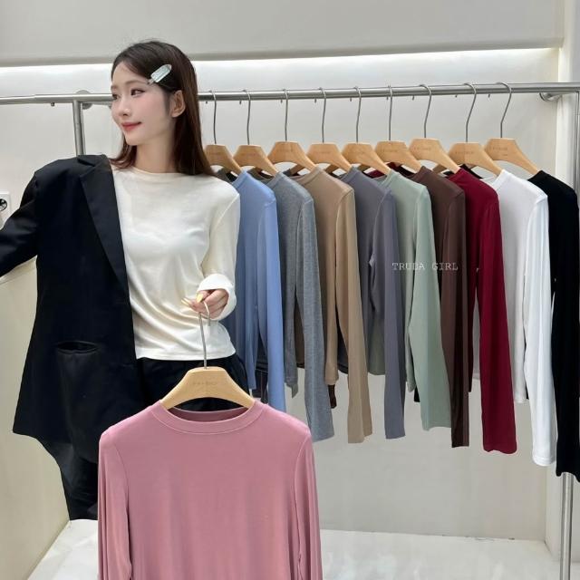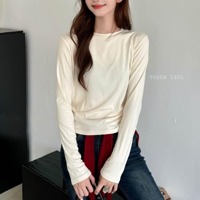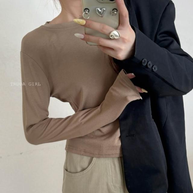 《杜達女孩》秋冬細螺紋高彈上衣 內搭上衣 棉質上衣 薄長袖 長袖t恤 薄款打底衫 圓領長袖上衣 長袖內搭上衣 素面t恤