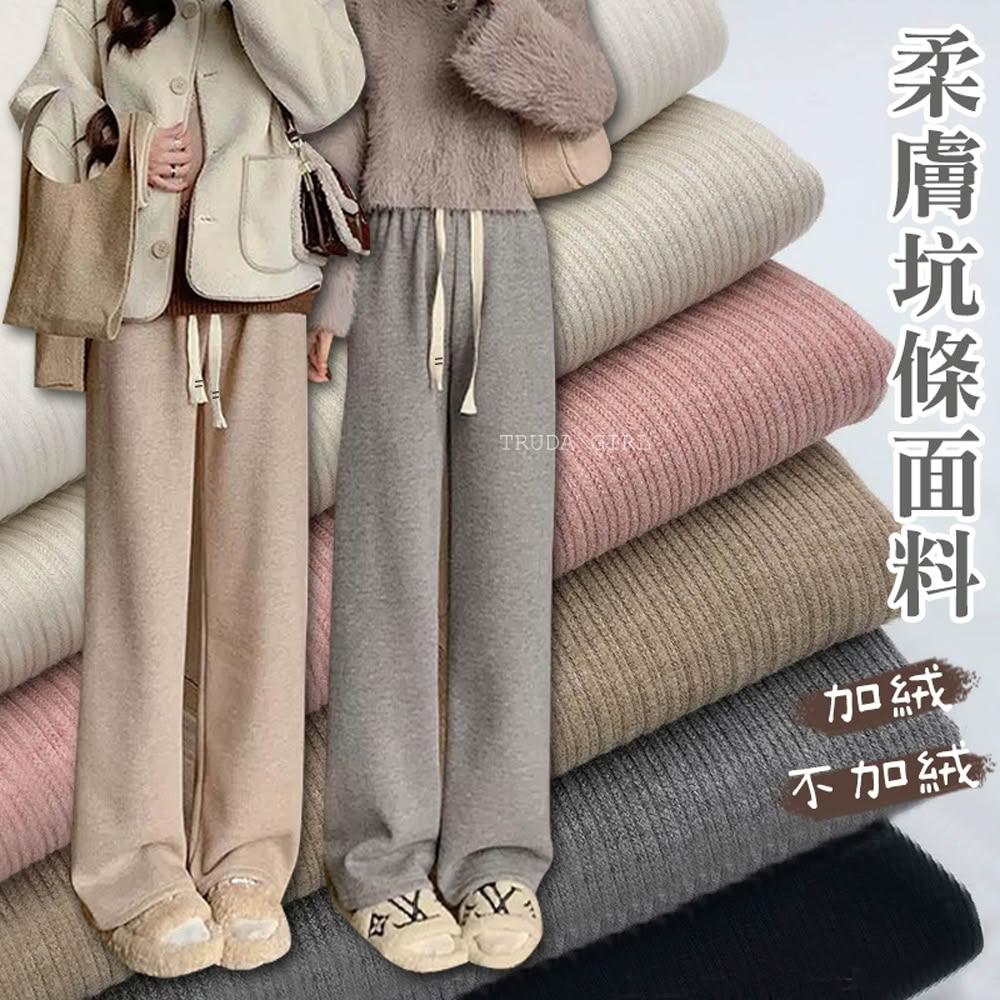 《杜達女孩》2025新款軟糯坑條糯米褲 秋冬寬褲 加厚加絨褲 棉質休閒褲 保暖褲 針織褲 拖地褲 闊腿褲 長褲 女 褲子