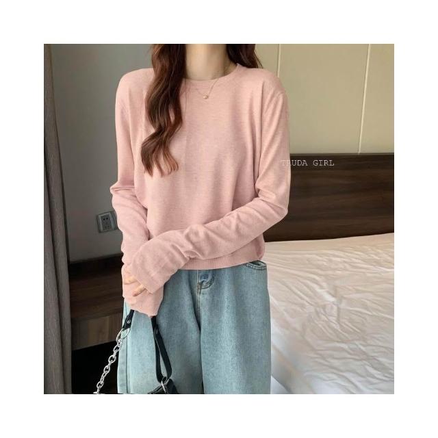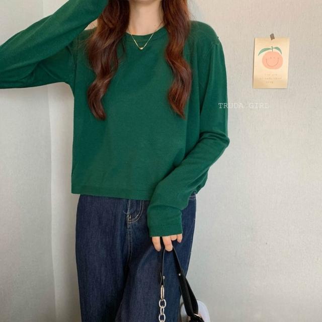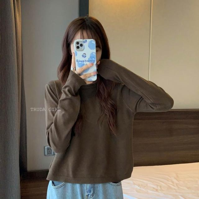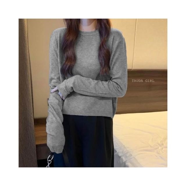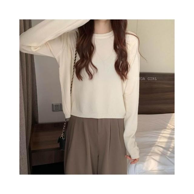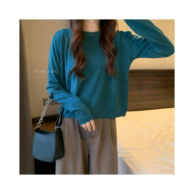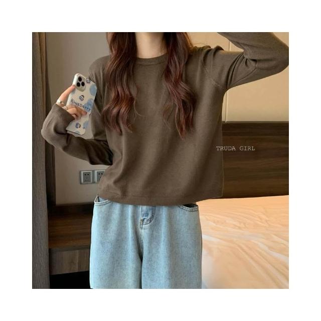 《杜達女孩》出場率100%舒適慵懶微短版針織上衣 包芯紗薄針織 秋冬針織上衣 圓領毛衣 短版毛衣 短版針織 寬鬆長袖上衣
