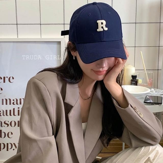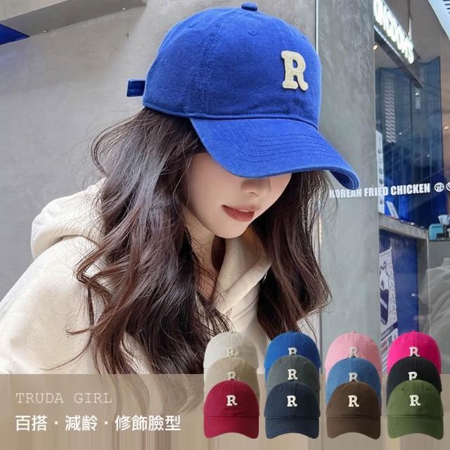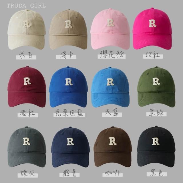 《杜達女孩》大R刺繡貼布字母12色棒球帽 鴨舌帽 美式復古棒球帽 防曬帽 字母帽 刺繡帽 帽子 棒球帽 潮帽 男女 帽