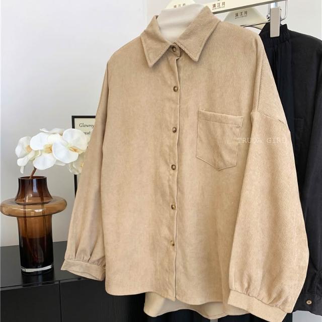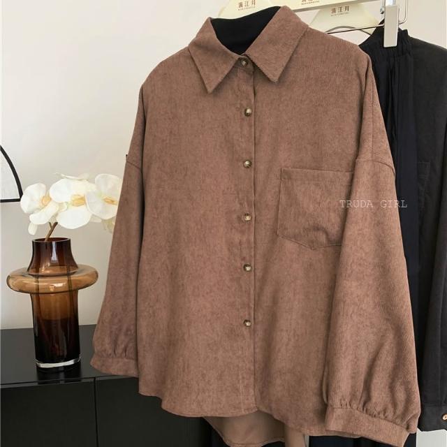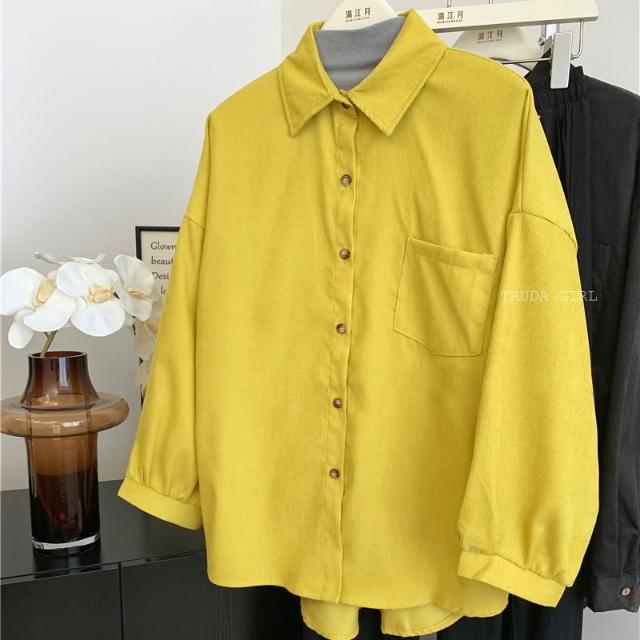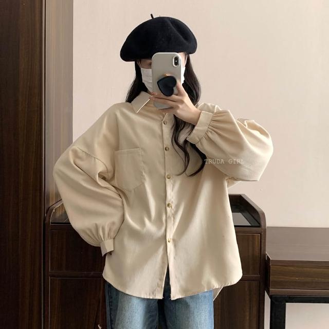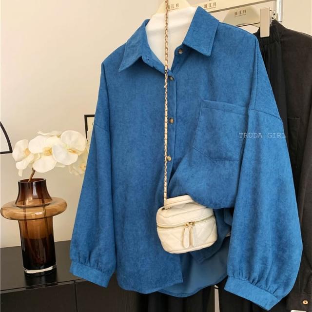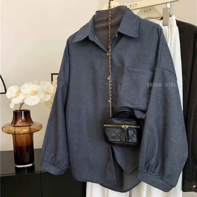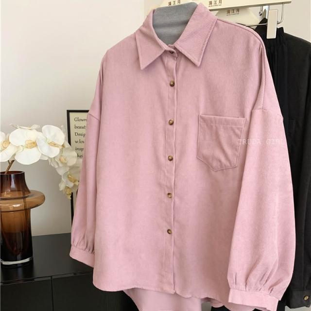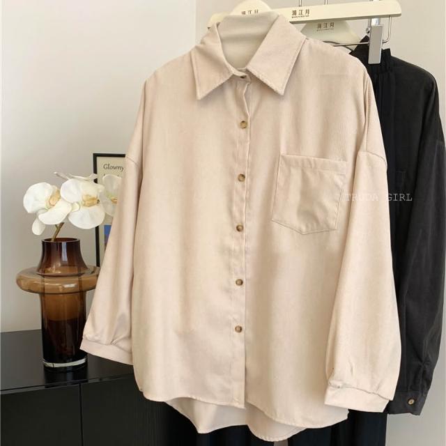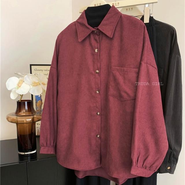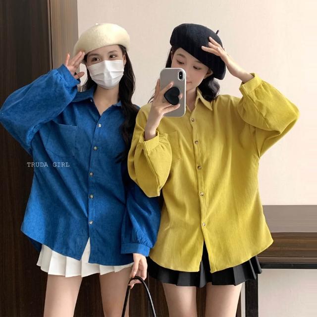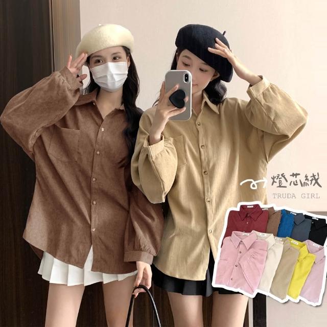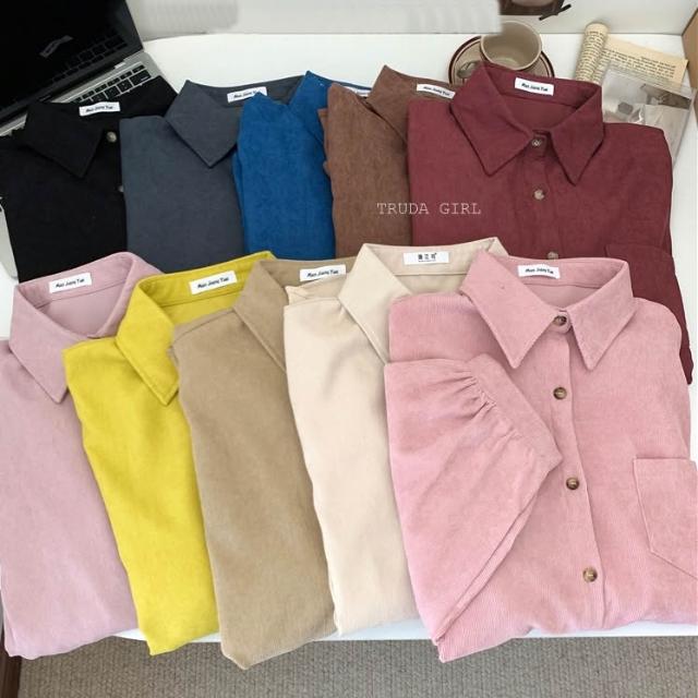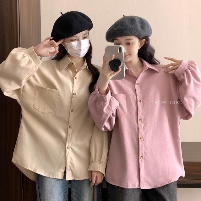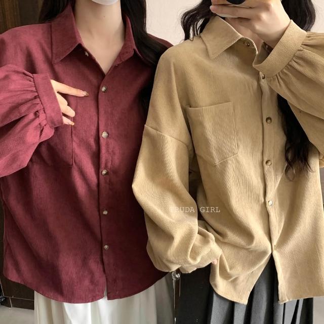 《杜達女孩》奶油糖霜捲燈芯絨襯衫 九色燈芯絨長袖襯衫 秋冬襯衫 立領襯衫 燈芯絨襯衫 泡泡袖襯衫 薄絨襯衫 磨毛襯衫 女