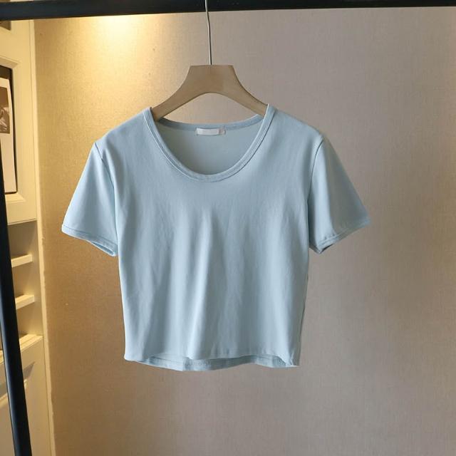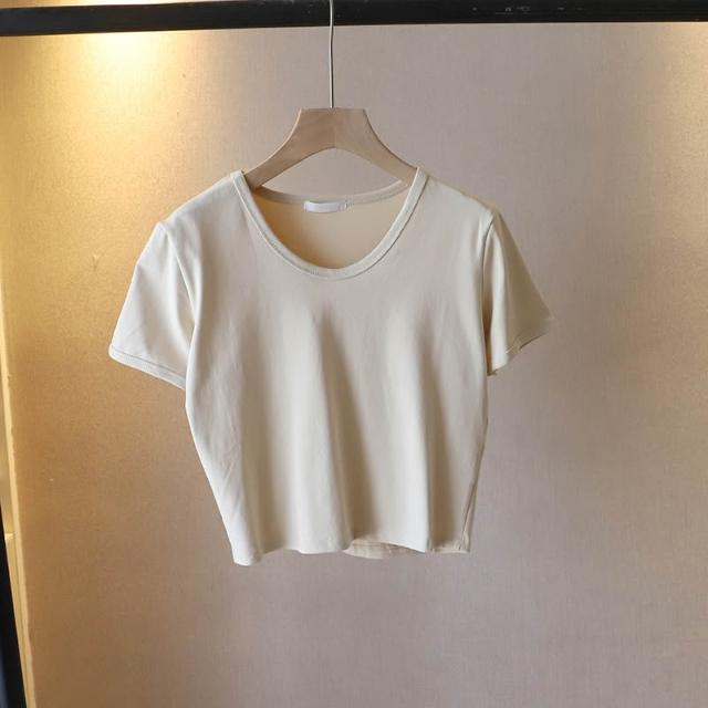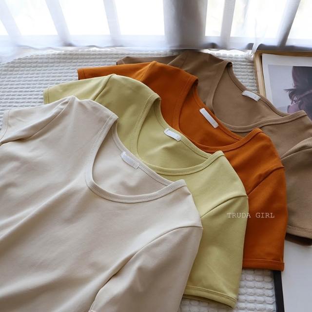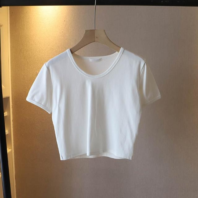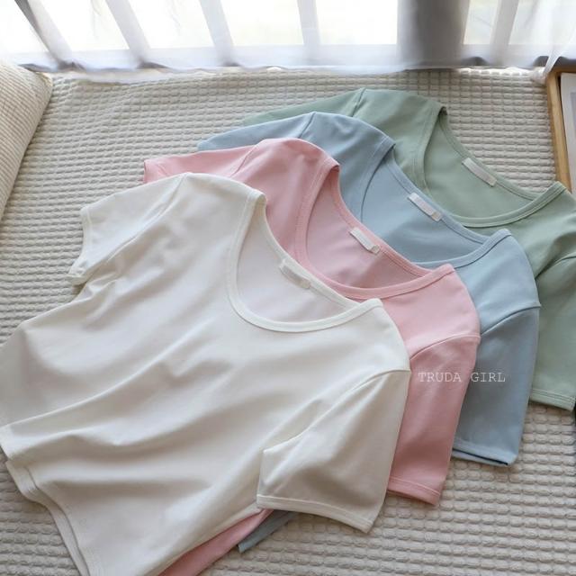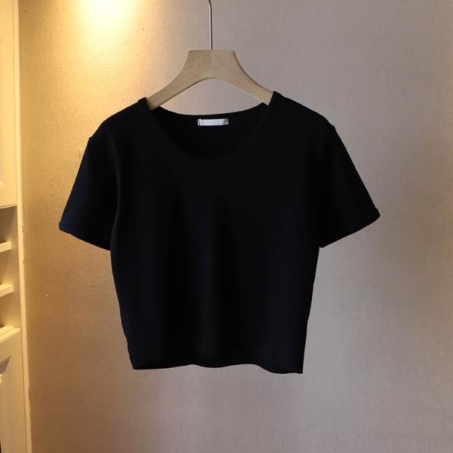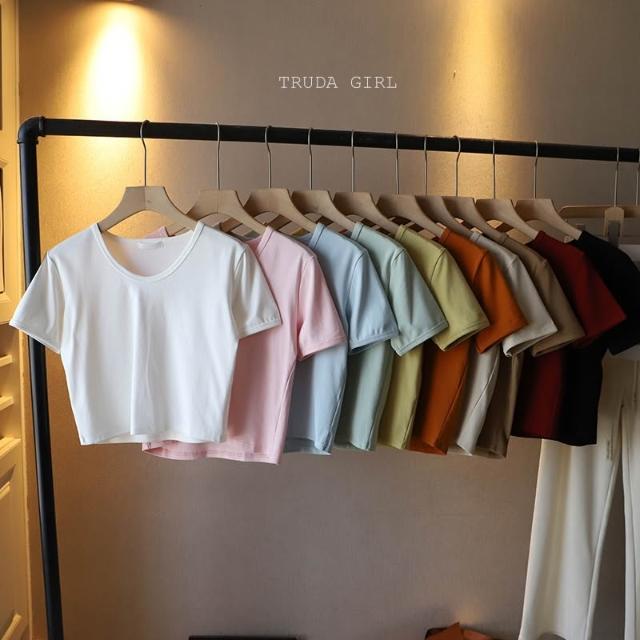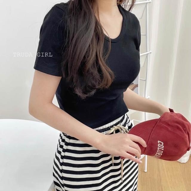 《杜達女孩》夏日基本百搭超彈V領短版T 短版上衣 短袖上衣 T恤 素色 素面T 短版T 純色T V領上衣 短袖T恤 女