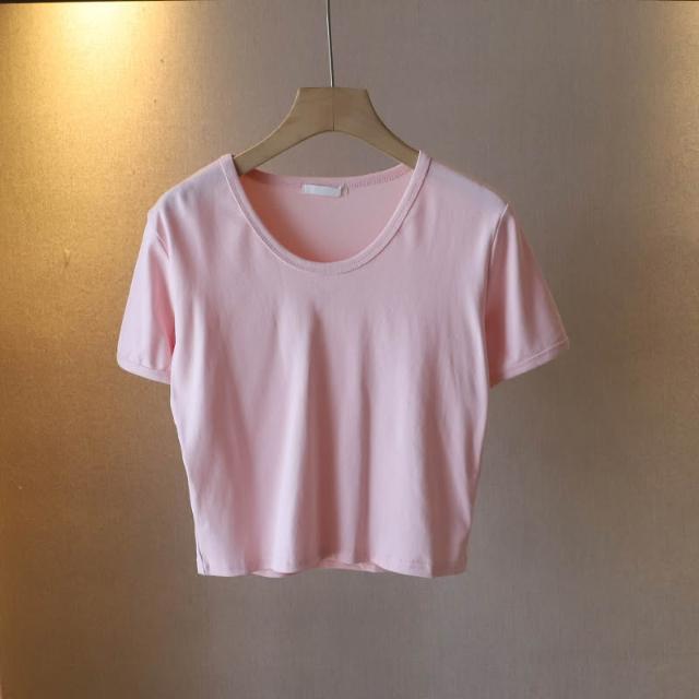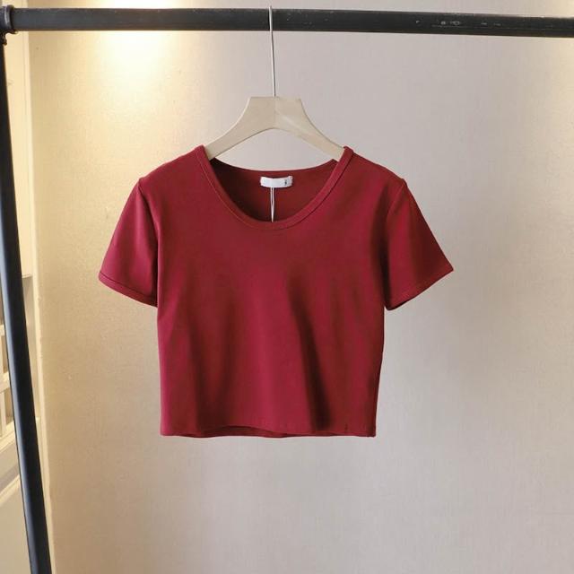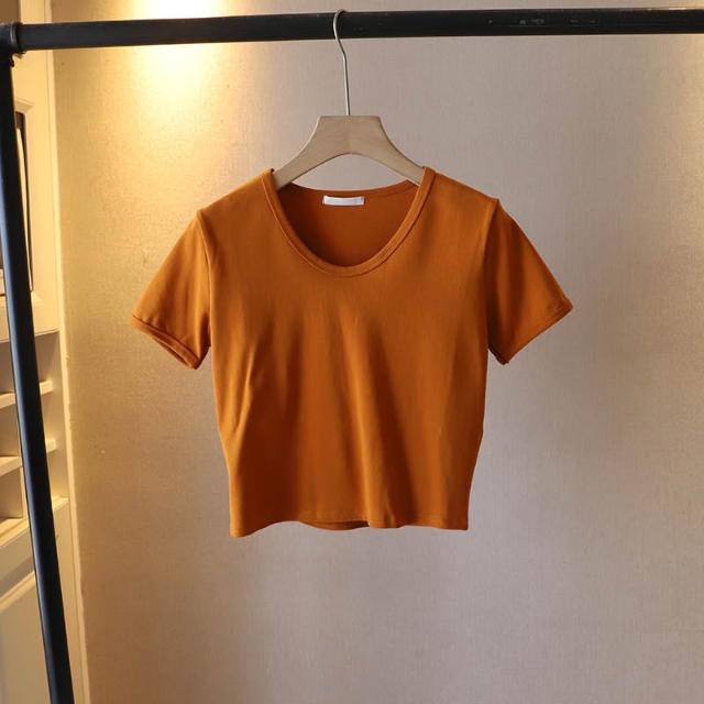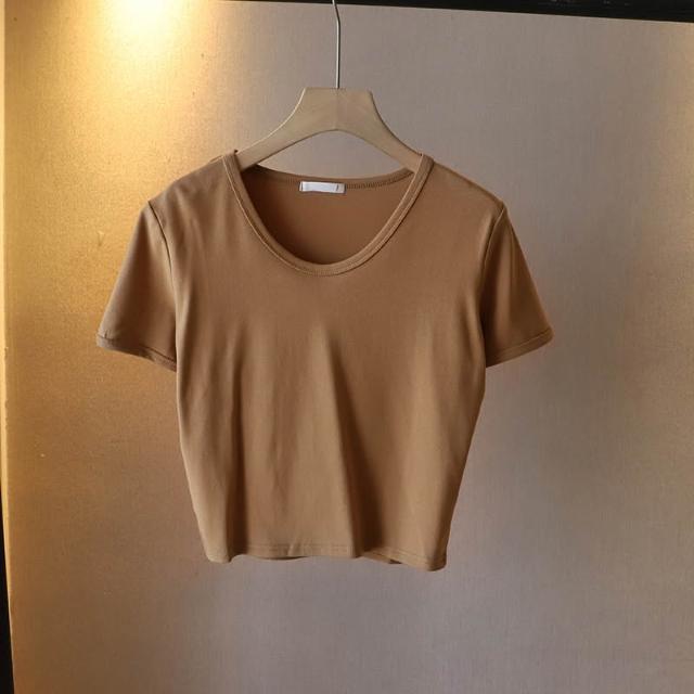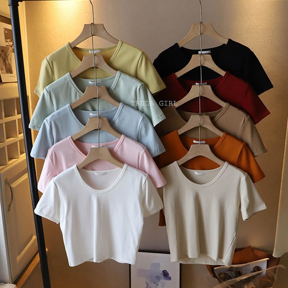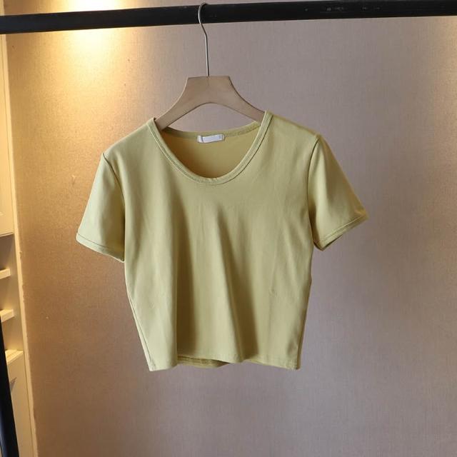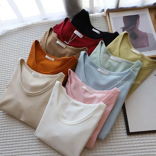 《杜達女孩》夏日基本百搭超彈V領短版T 短版上衣 短袖上衣 T恤 素色 素面T 短版T 純色T V領上衣 短袖T恤 女
