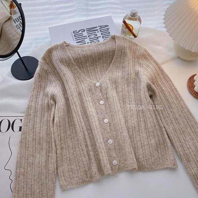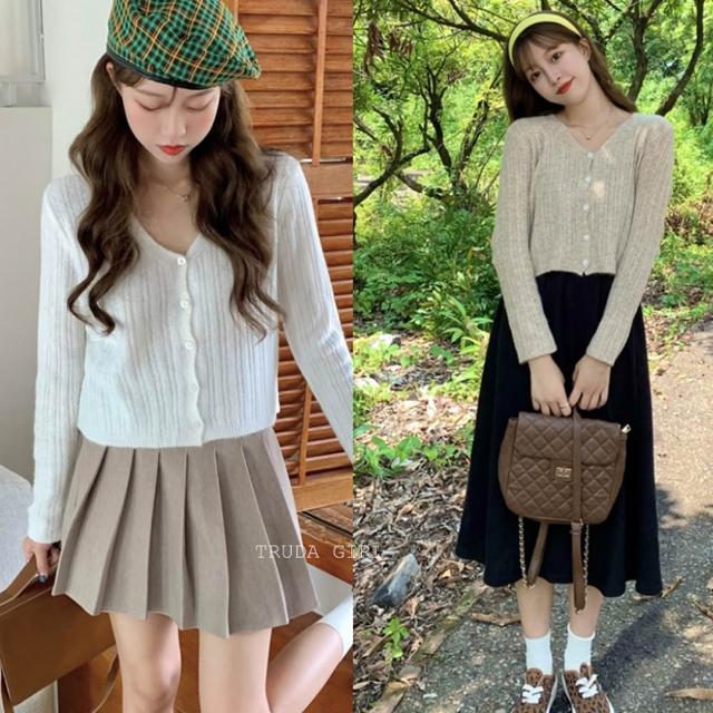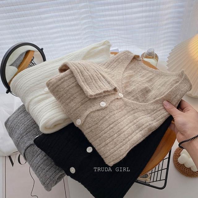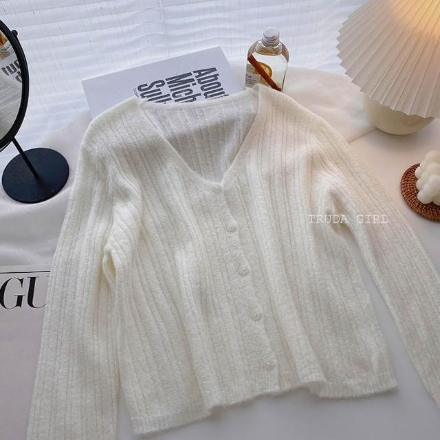 《杜達女孩》綿羊系女孩 兩穿柔軟針織毛衣 仿羊絨排釦長袖上衣 毛衣外套 薄款毛衣 外套罩衫 長袖上衣 針織外套