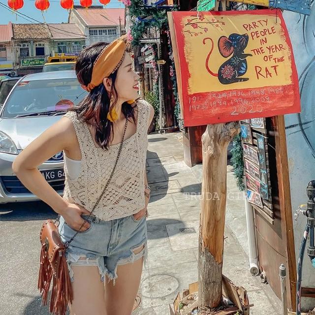 《杜達女孩》波西米亞蕾絲鏤空背心 鈎花針織吊帶背心 渡假風洞洞罩衫 渡假海邊 蕾絲上衣 寬鬆背心 短版 女