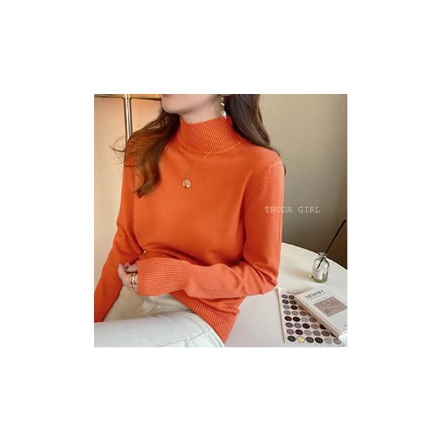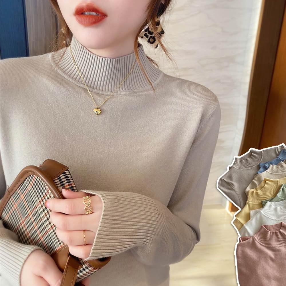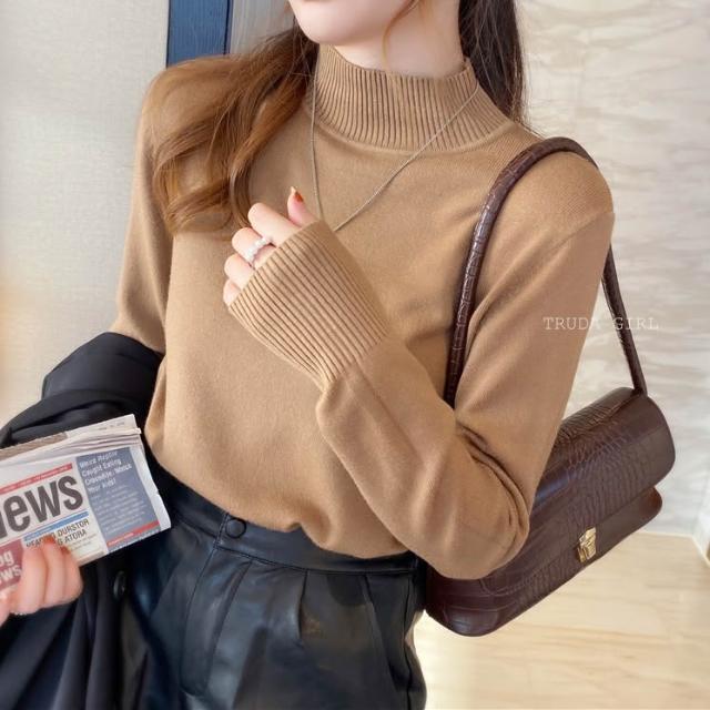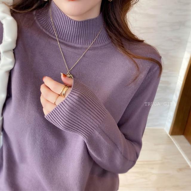《杜達女孩》雲朵般手感 12色包芯紗半高領 螺紋平織針織上衣 高領上衣 針織上衣 薄針織 內搭上衣 素面內搭毛衣 女長袖