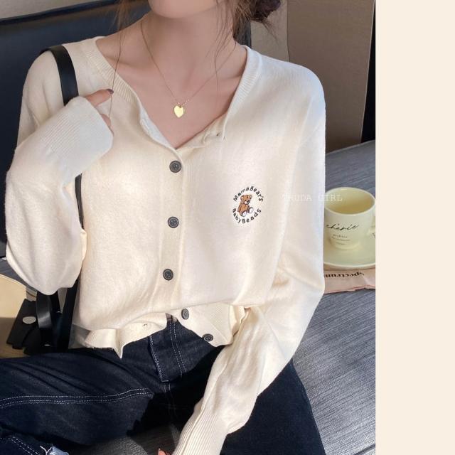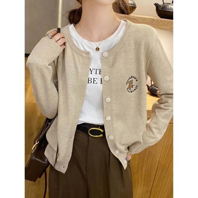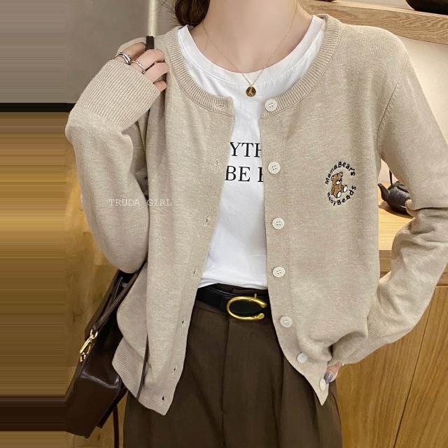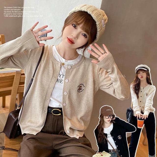《杜達女孩》布蘭頓高校 小熊刺繡針織外套 開衫外套 薄外套 秋冬外套 針織開衫 小外套 包芯紗外套 長袖外套 毛衣外套
