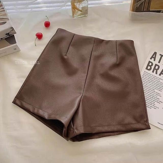 《杜達女孩》質感霧面軟皮皮褲 霧面皮短褲 短皮褲 合身皮褲 包臀皮褲 秋冬皮褲 PU皮褲 A字褲 霧面皮褲 搭靴子 靴褲