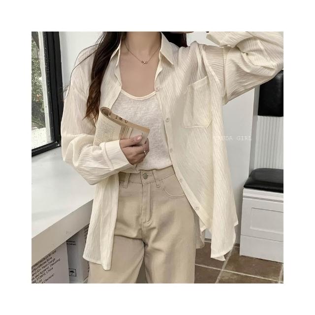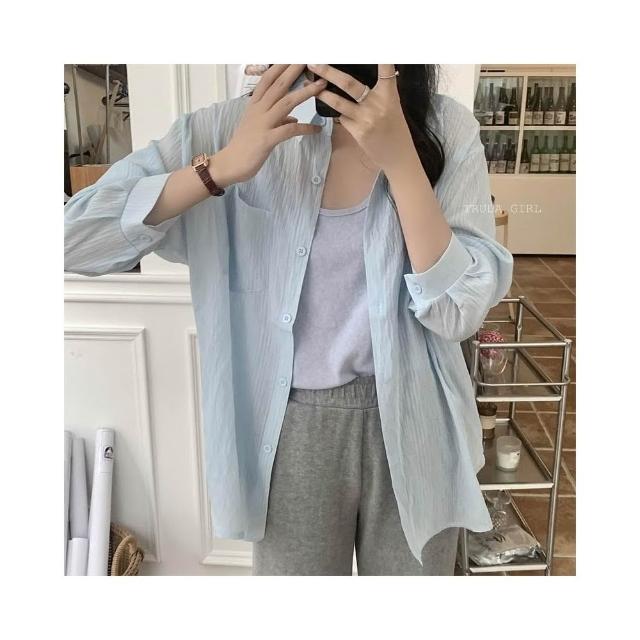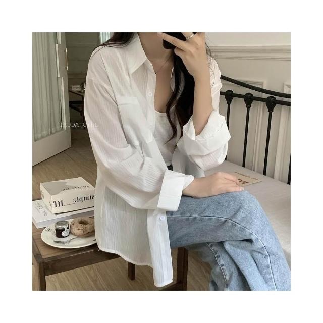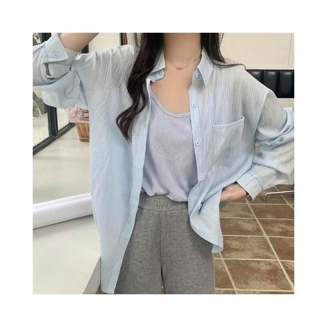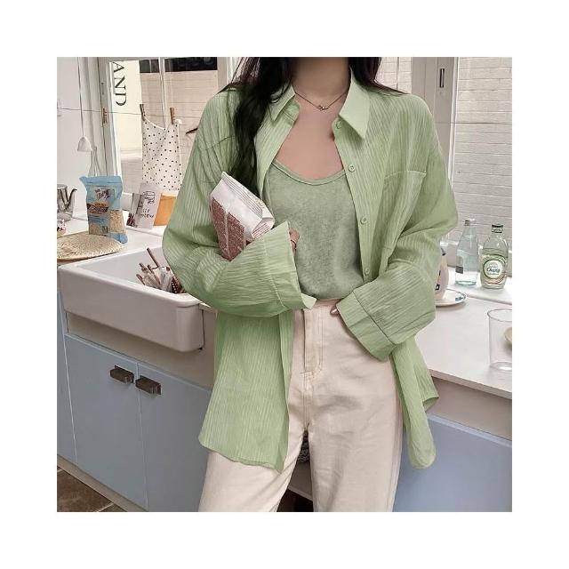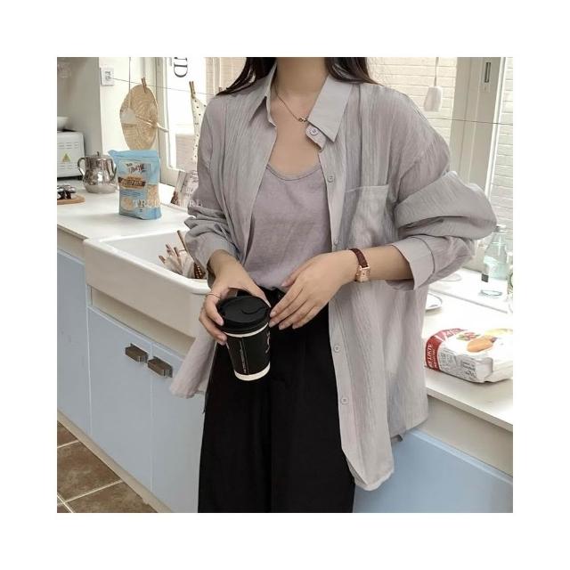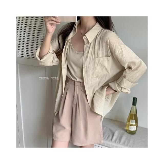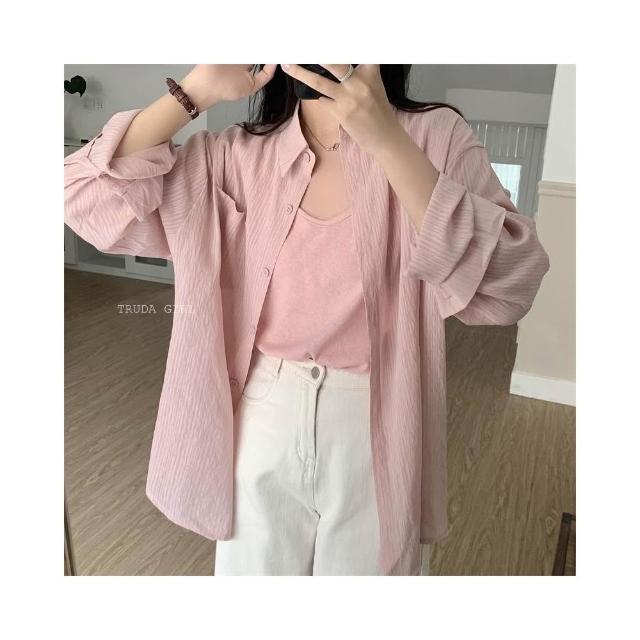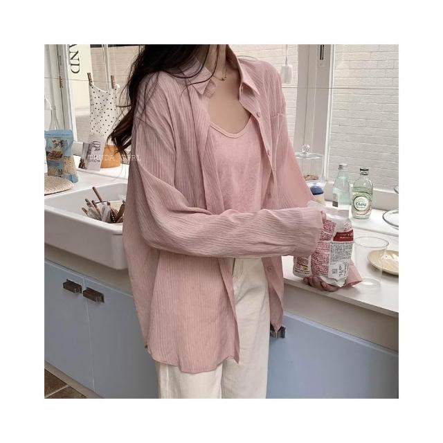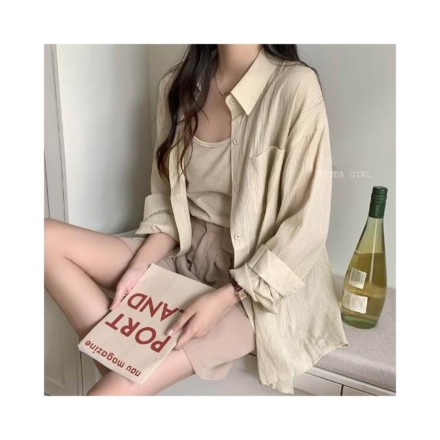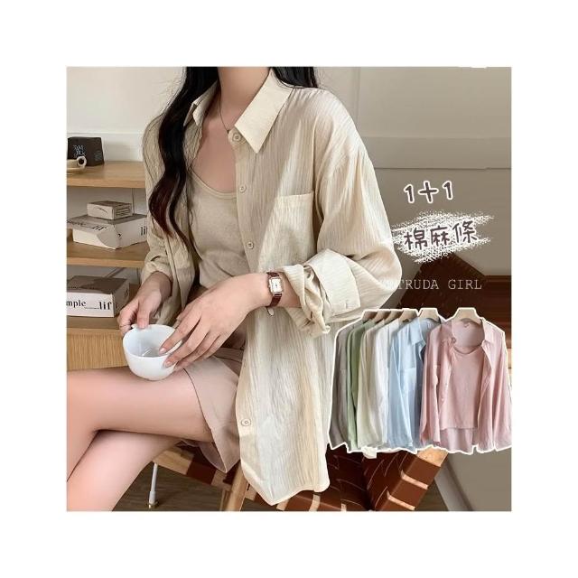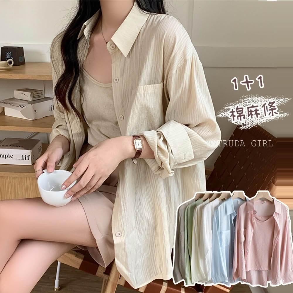 《杜達女孩》1+1襯衫兩件套 襯衫+吊帶背心 防曬罩衫 小可愛 兩件式 雪紡罩衫 開衫外套 薄款 防曬外套 襯衫 罩衫