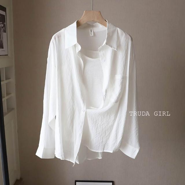 - 罩衫面料微皺皺 好輕薄 好透氣