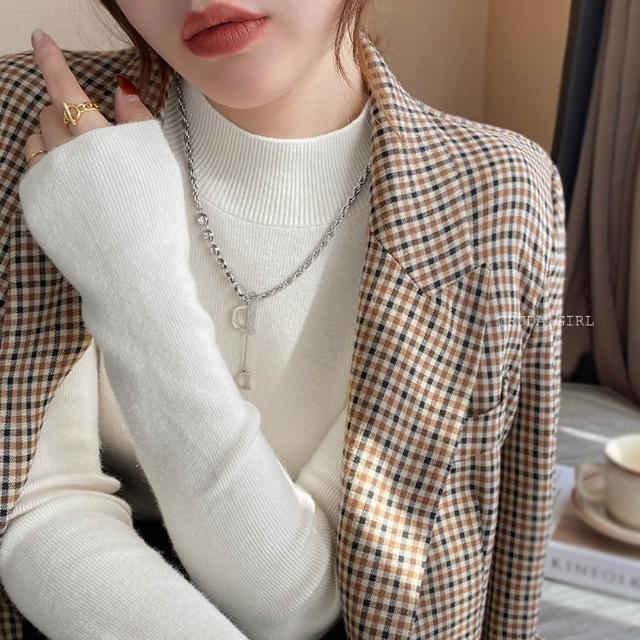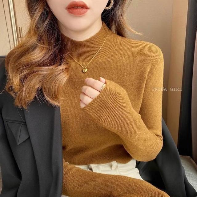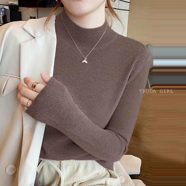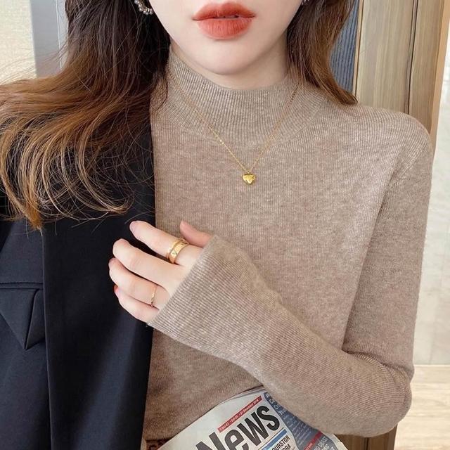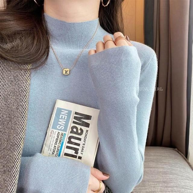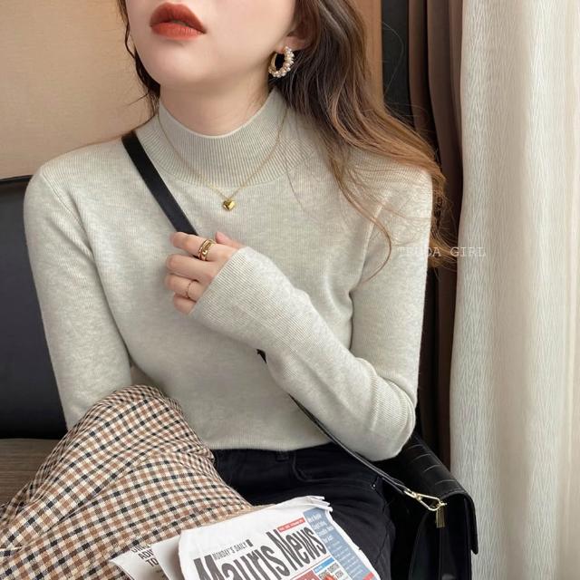 《杜達女孩》奶系高級感 抗起球洋絨針織半高領 包芯紗 針織上衣 内搭高領 内搭小立領 秋冬内搭 針織内搭上衣 針織内搭