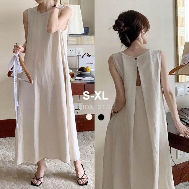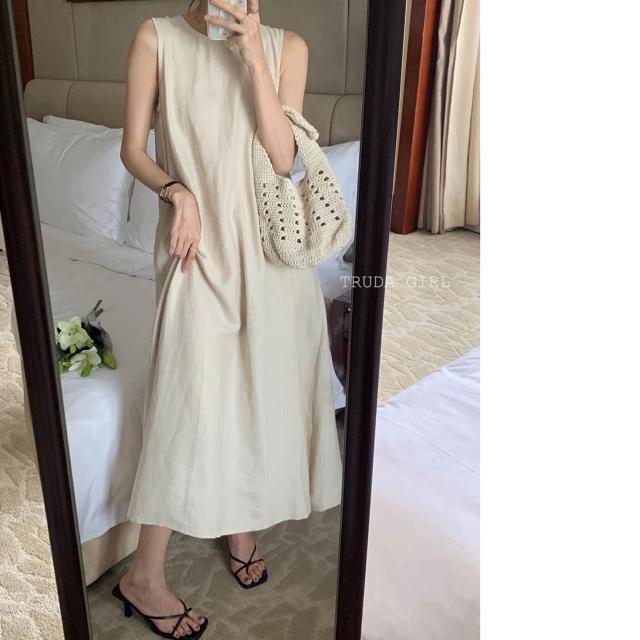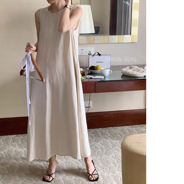 《杜達女孩》阿那亞晚風輕柔仿棉麻連身裙 無袖連身洋裝 連身裙 渡假洋裝 露背洋裝 長裙 渡假風洋裝 裙子 無袖連身裙