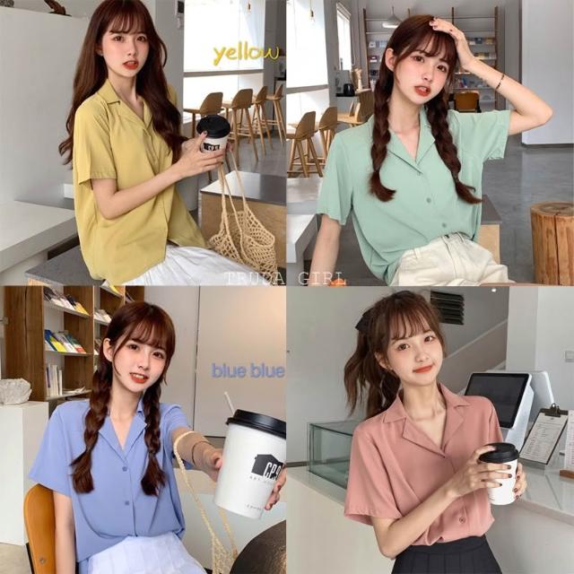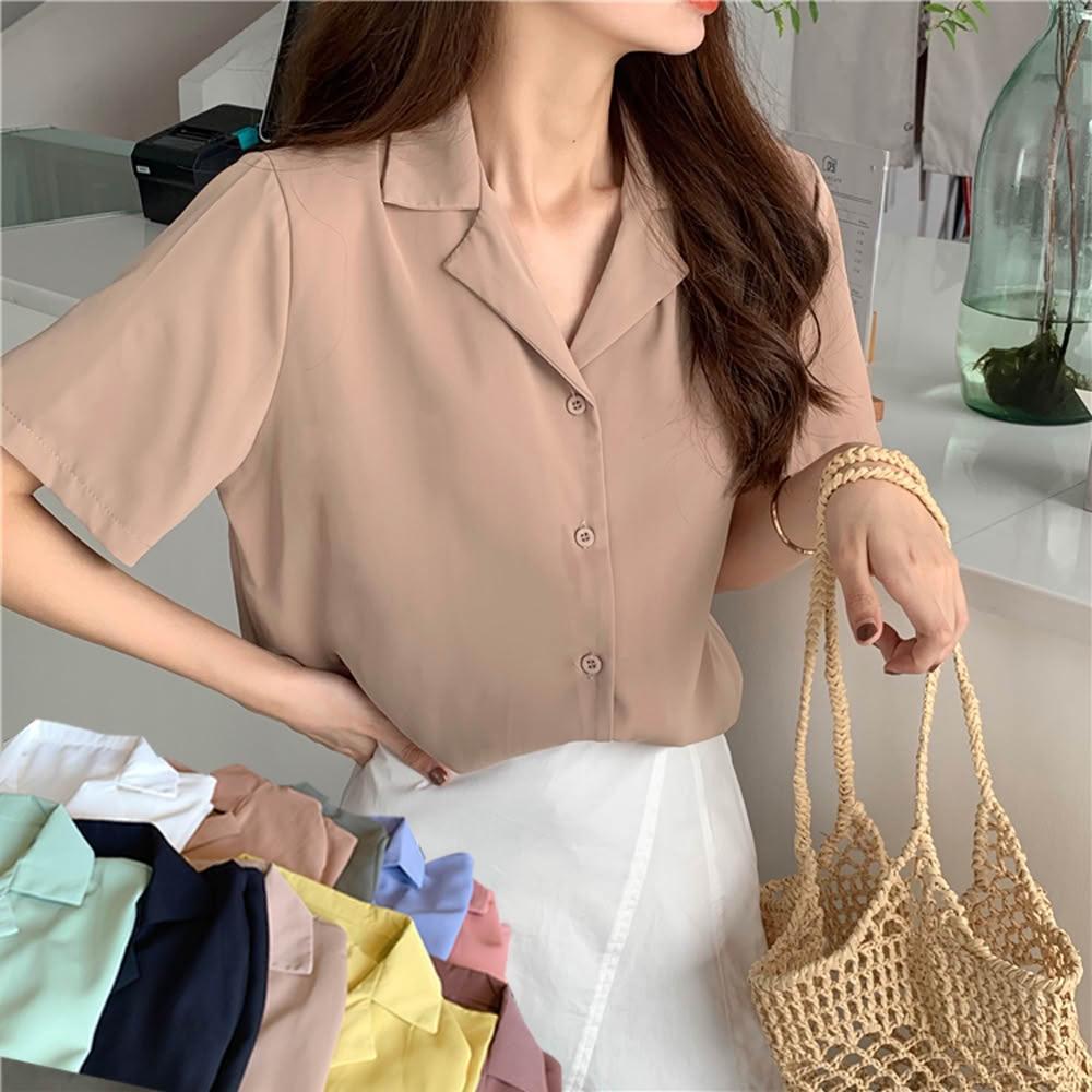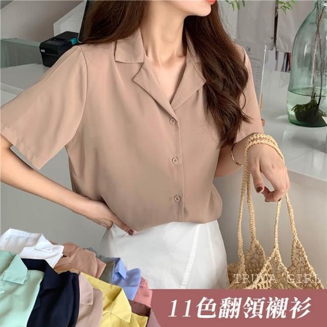 《杜達女孩》小眾款西裝領翻領襯衫 短袖襯衫 雪紡襯衫 百搭簡約純色襯衫 OL 氣質 上班族 雪紡上衣 襯衫 女