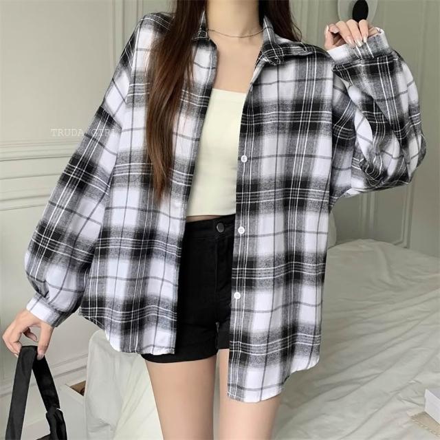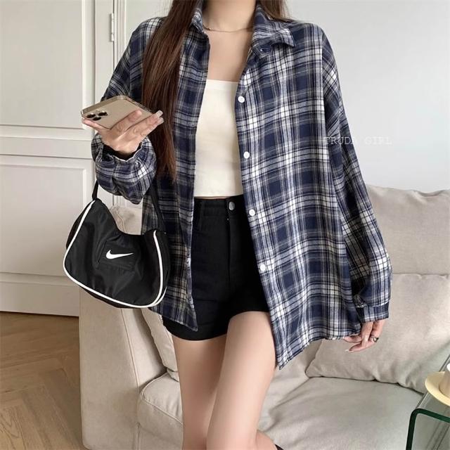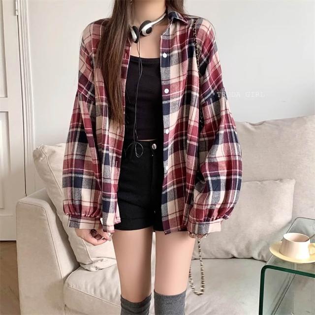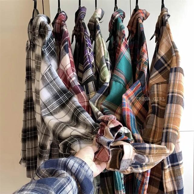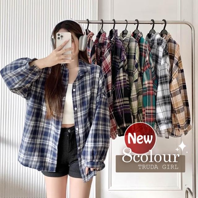 《杜達女孩》派對格紋妹仔❤️8色格紋長袖襯衫 磨毛格子襯衫 秋冬格紋襯衫 寬鬆上衣 長袖上衣 襯衫外套 大尺碼 襯衫罩衫
