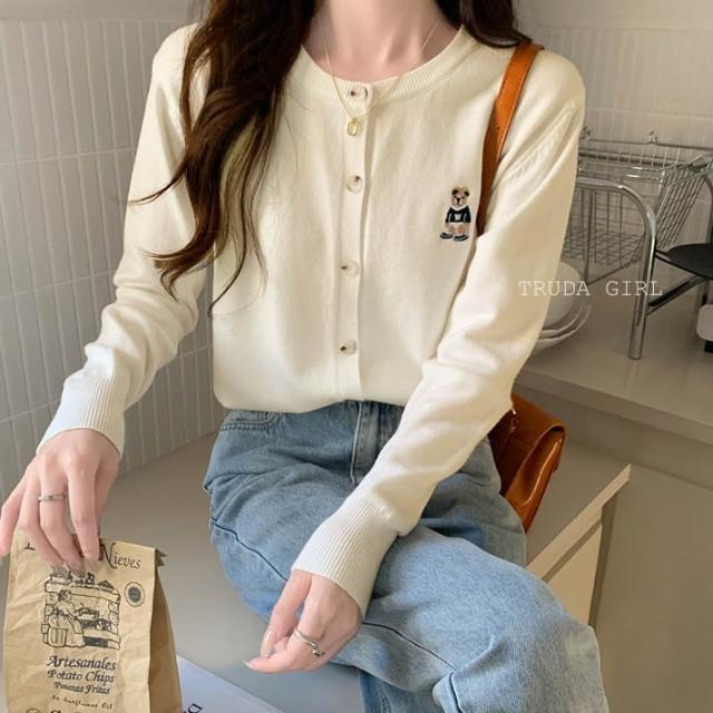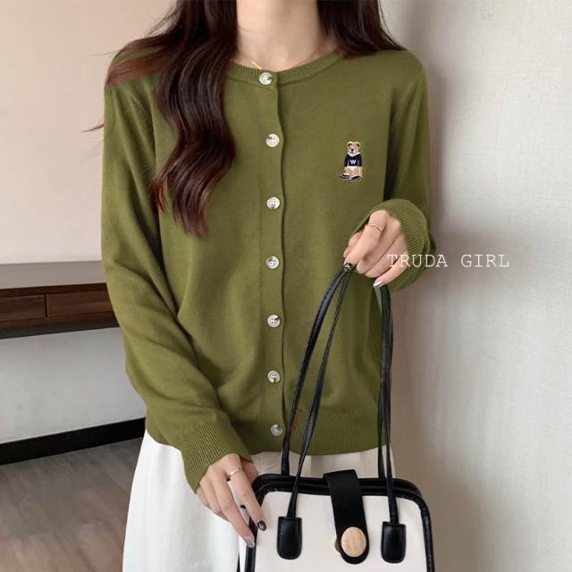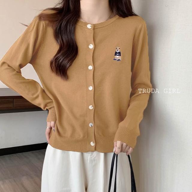 《杜達女孩》9色韓風小熊刺繡針織外套 包心紗排釦長袖上衣 針織上衣 刺繡小熊 包芯紗針織外套 長袖上衣 薄款針織 薄外套
