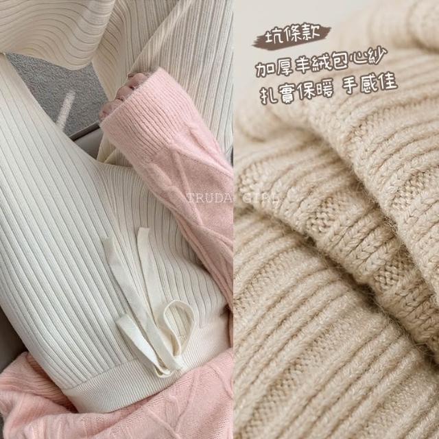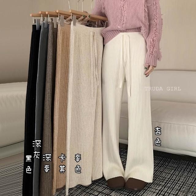 《杜達女孩》坑條款重磅加厚秋冬針織長褲 加厚包心紗針織闊腿褲 針織長褲 針織寬褲 鬆緊腰直筒褲 針織褲 保暖長褲 女長褲